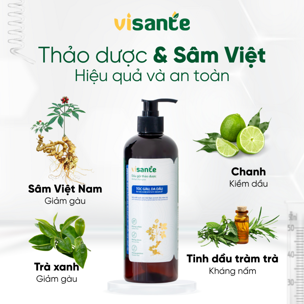 Dầu Gội Thảo Dược Visante Làm Sạch Sâu, Giảm Gàu, hết ngứa chiết Xuất Thiên Nhiên An Toàn Lành Tính
