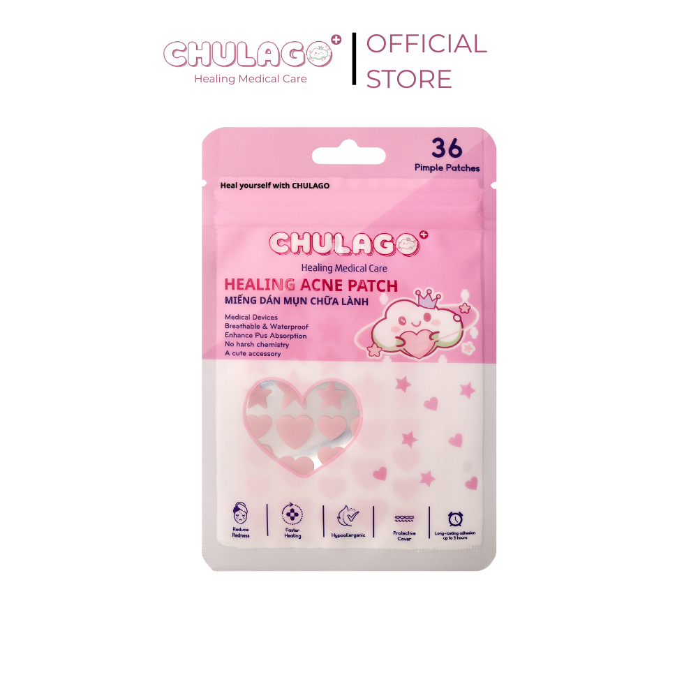 Miếng dán mụn thời trang CHULAGO sticker Hydrocolloid Hút Mụn Sạch + Ngừa Viêm + Giảm Sưng + Che Mụn Pink Lover- #MD05