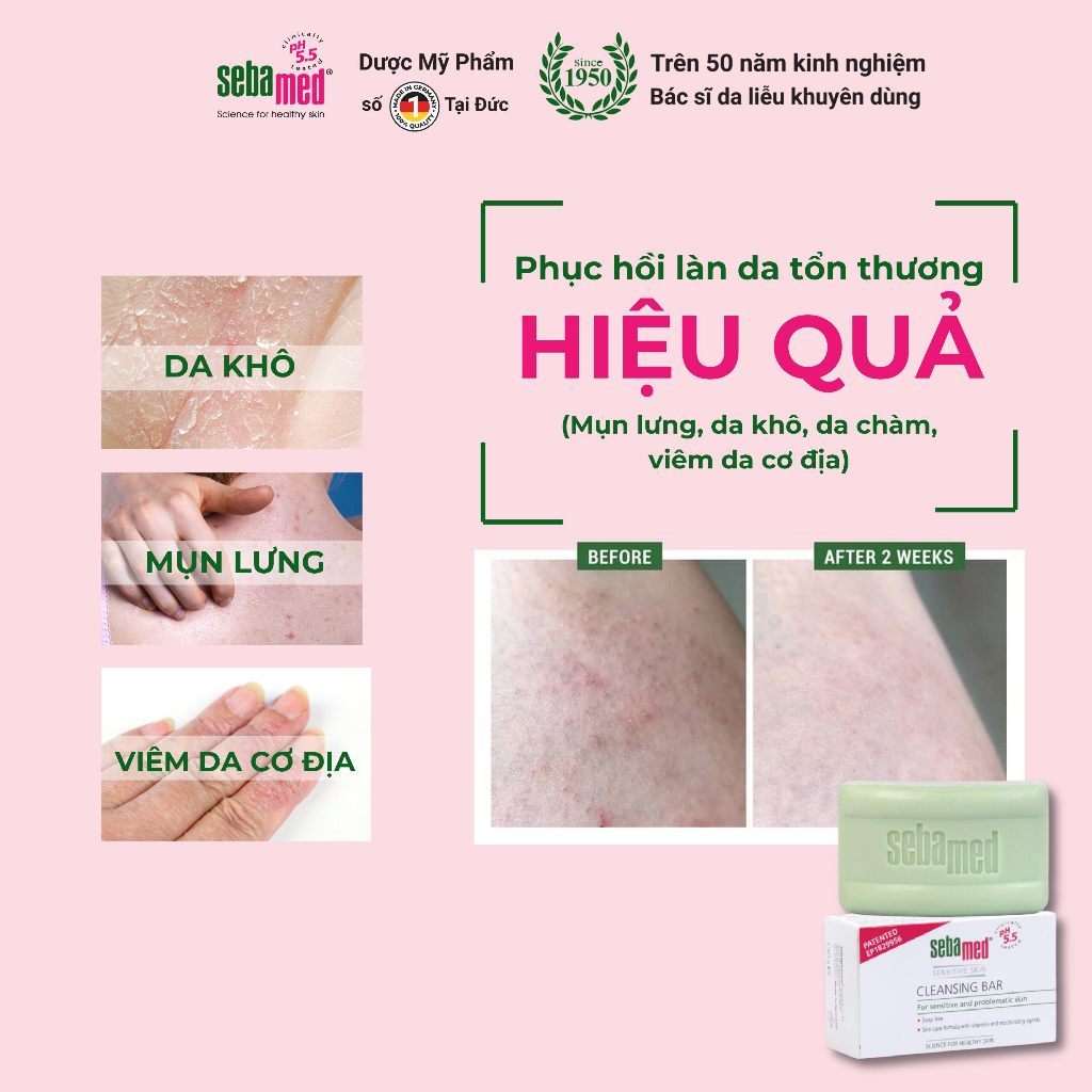 Thanh kháng khuẩn làm sạch da mụn Sebamed pH5.5 (100g) cho da nhạy cảm chàm khô da cơ địa