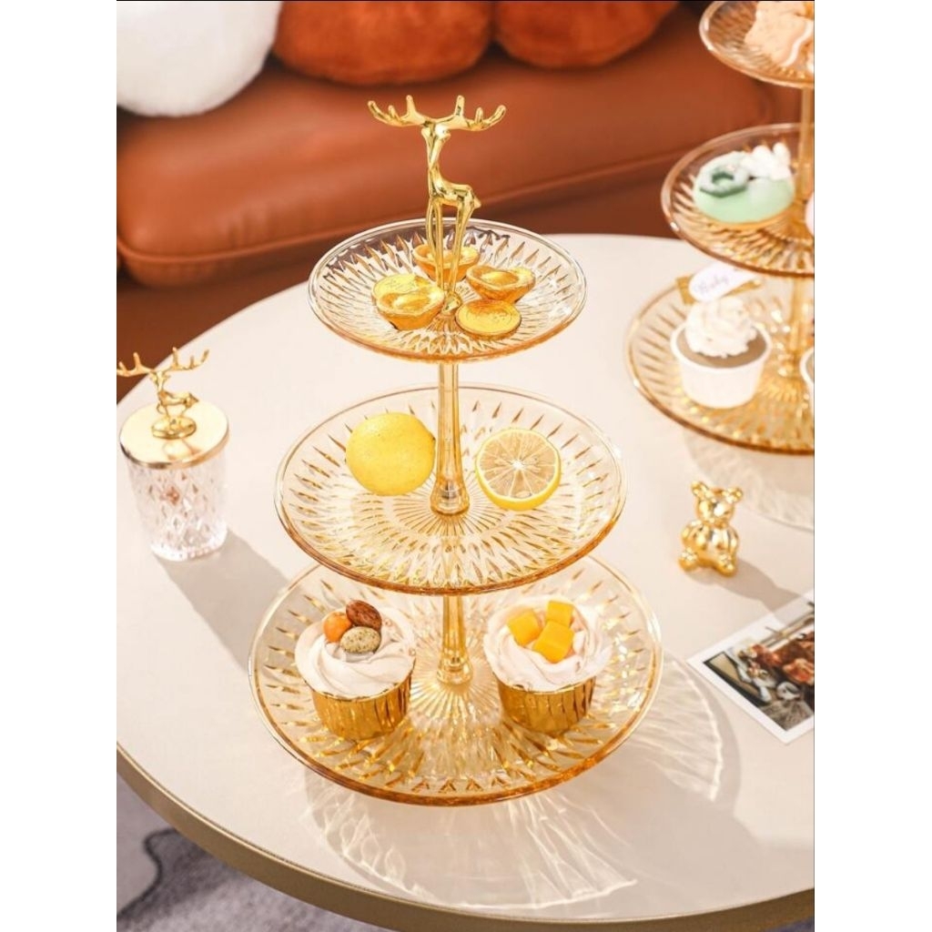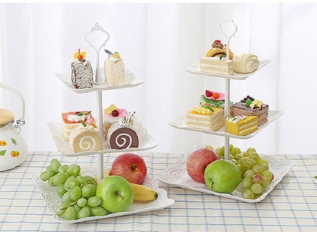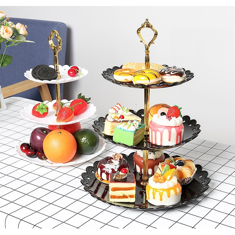 [Vuông/Tròn] Khay Đựng Trái Cây Bánh Kẹo Đĩa Đựng Hoa Quả Decor 3 Tầng Hình Tròn Hình Vuông Cao Cấp Sang Trọng