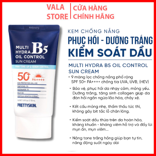 Kem chống nắng phục hồi dưỡng trắng, kiểm soát dầu nhờn (PRETTYSKIN MULTI HYDRA B5 OIL CONTROL SUN CREAM),50ml