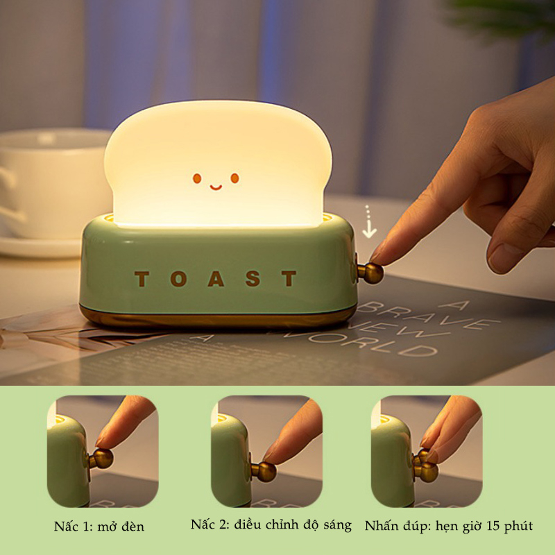 Đèn Ngủ Hình Máy Nướng Bánh Mì Tích Điện Nhiều Chế Độ Sáng, Đèn Led Trang Trí Decor Phòng Ngủ