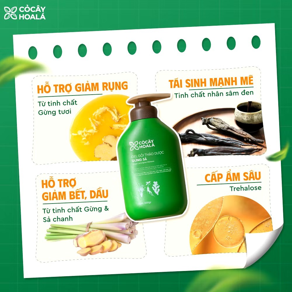 [Tặng 1 quà] Gel gội hữu cơ gừng sả 500g cỏ cây hoa lá,giảm tình trạng tóc bết dầu và ngứa da đầu