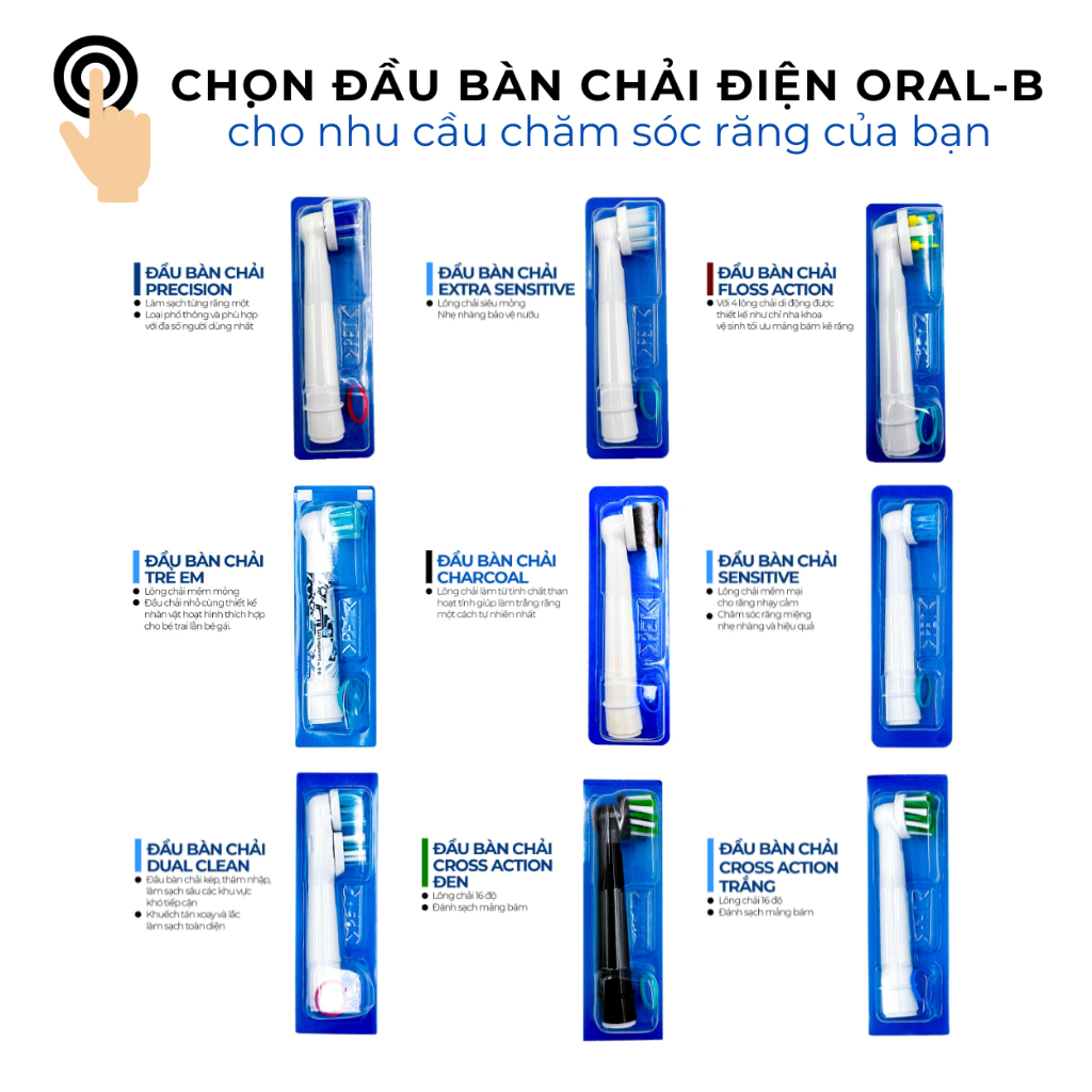 Đầu Lẻ Bàn Chải Điện Oral-B Braun - Nhiều Loại Đầu Chăm Sóc Răng Miệng, Đơn Vị Đầu Lẻ Tiện Lợi Để Trải Nghiệm (Tách Set)