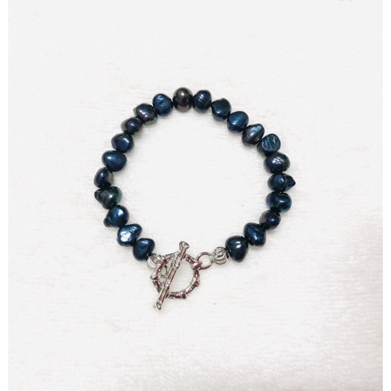 Vòng Tay Ngọc Trai Hạt Dẹt Màu Đen Khóa OT - Ngọc Trai Trường Thịnh