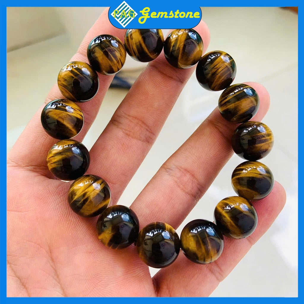 Vòng Tay Phong Thuỷ Đá Thạch Anh Mắt Hổ Màu Vàng Nâu - Đá Phong Thuỷ PAG
