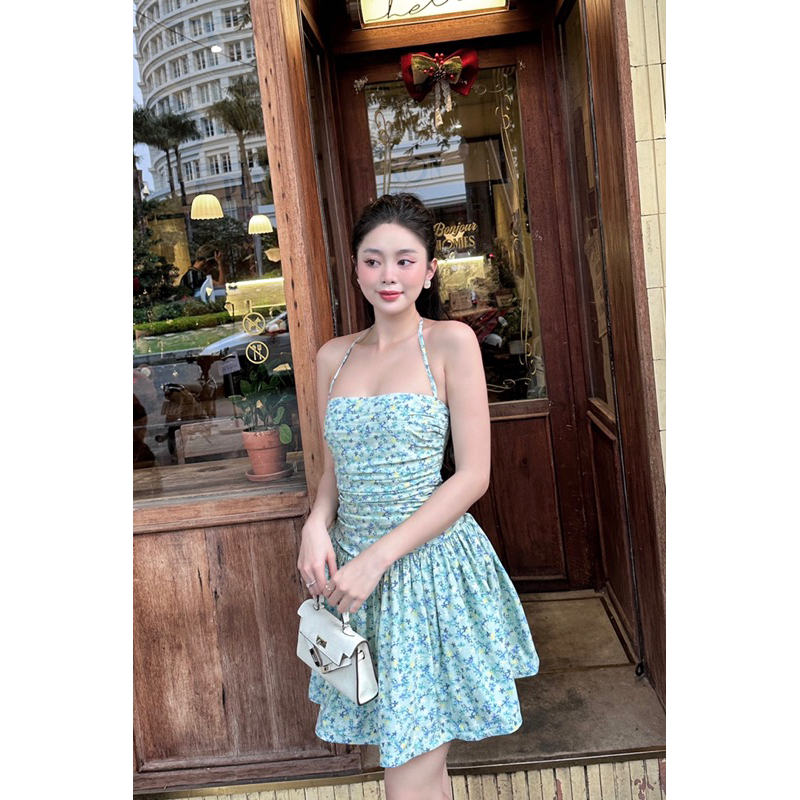 Váy quây nữ váy ống váy cúp ngực dáng ngắn họa tiết hoa nhí màu xanh cực xinh chất liệu linen dày dặn trẻ trung xinh