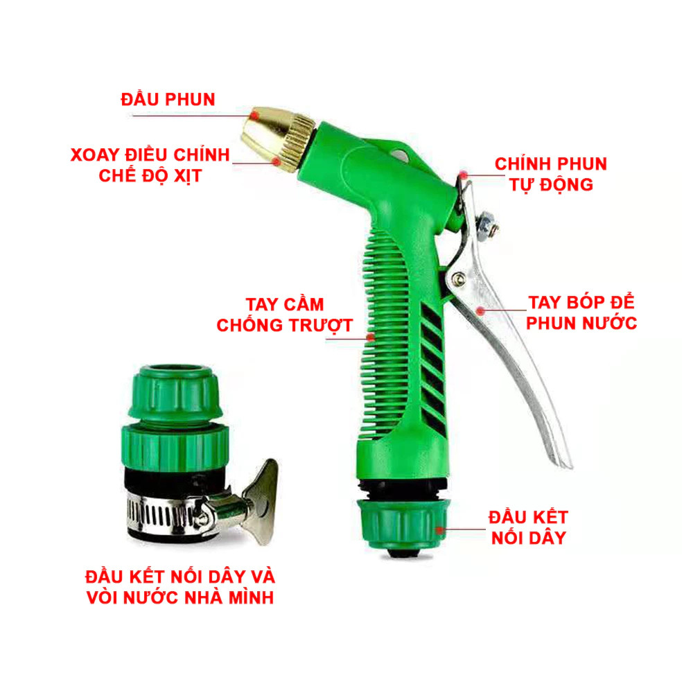 Vòi Xịt Tăng Áp Rửa Xe Gia Đình, Tưới Cây, Dọn Dẹp Rửa Sân 8 Chế Độ Xịt Kèm Súng Phun Tự Động