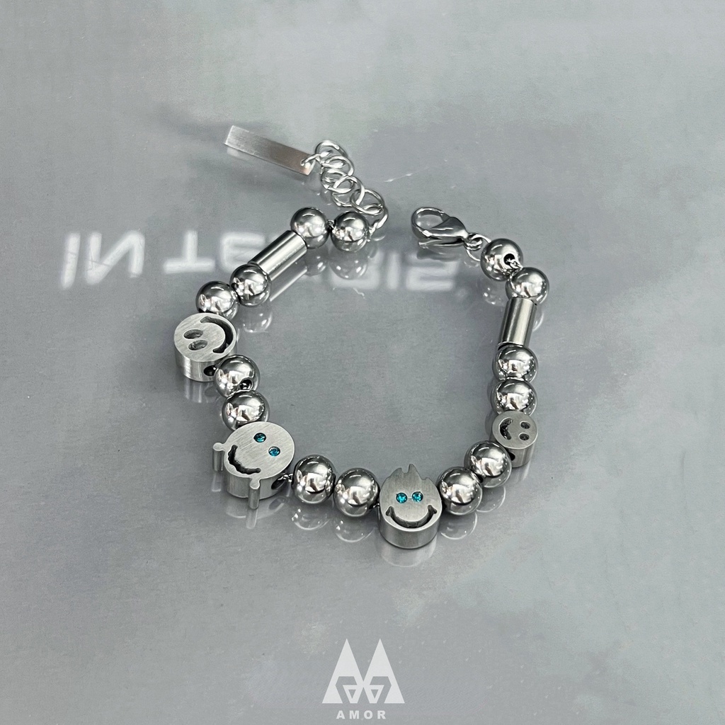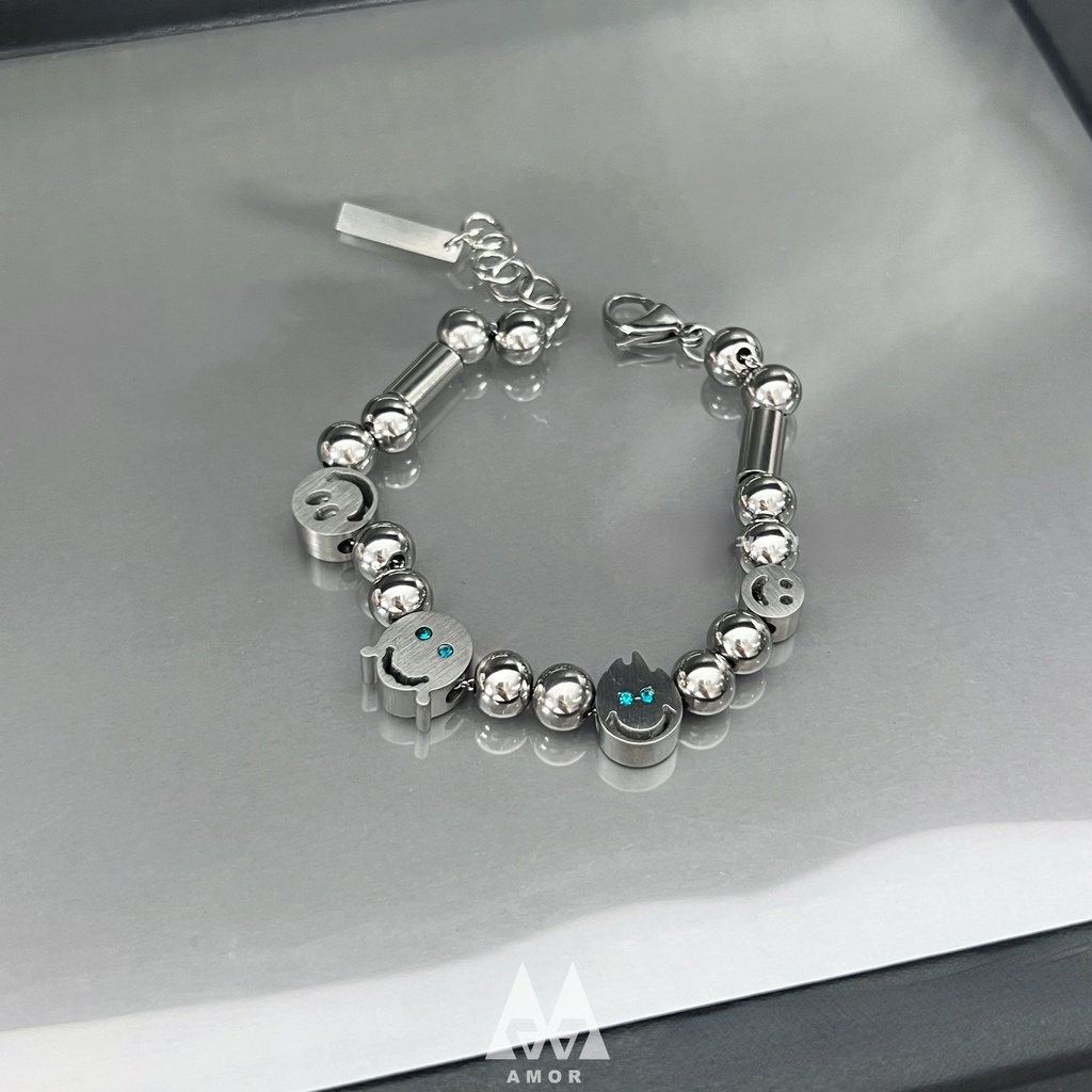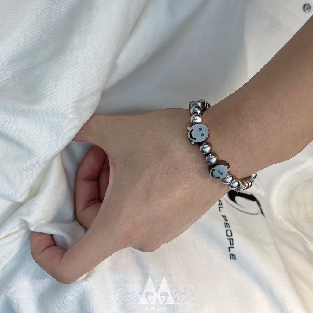 Mặt cười ma thiết kế gió mát mẻ đính cườm vòng tay thép titan hip hop nam nữ