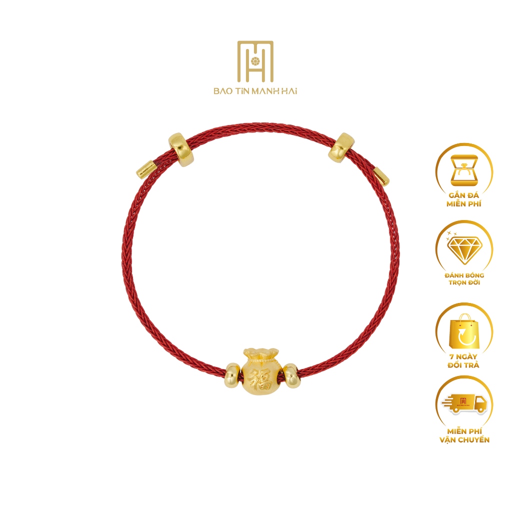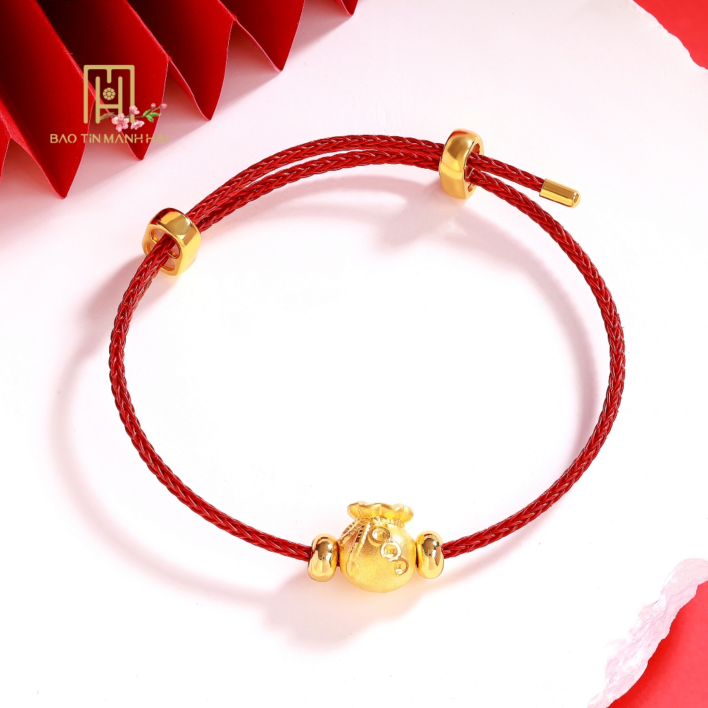 Vòng charm vàng 24K Túi Tiền dây cap đỏ mong của cải đầy nhà LC05 Bảo Tín Mạnh Hải