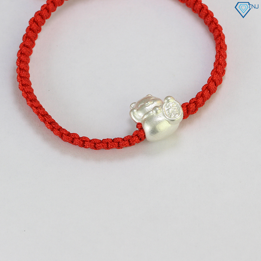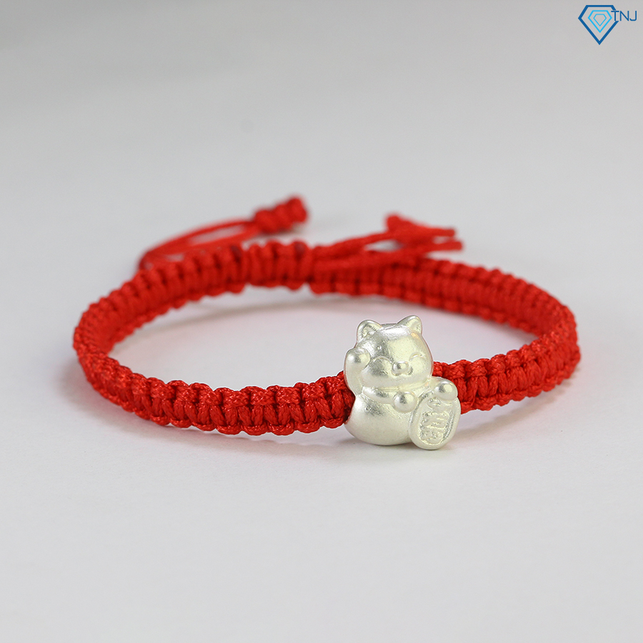 Vòng tay đan sợi chỉ đỏ may mắn charm bạc nguyên chất hình mèo thần tài LTN0338 - Trang Sức TNJ