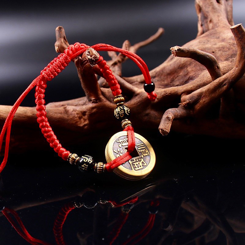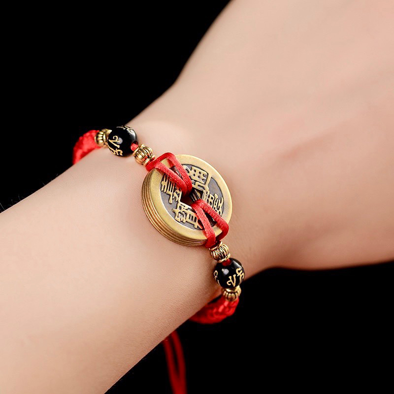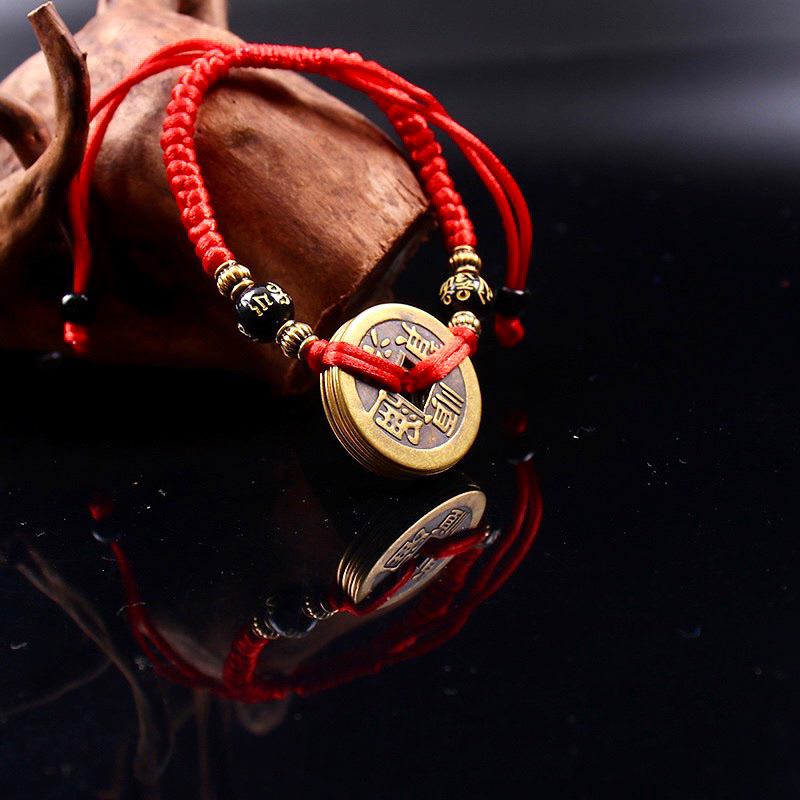Vòng tay dây đỏ 5 xu ngũ đế may mắn , bình an và tài lộc