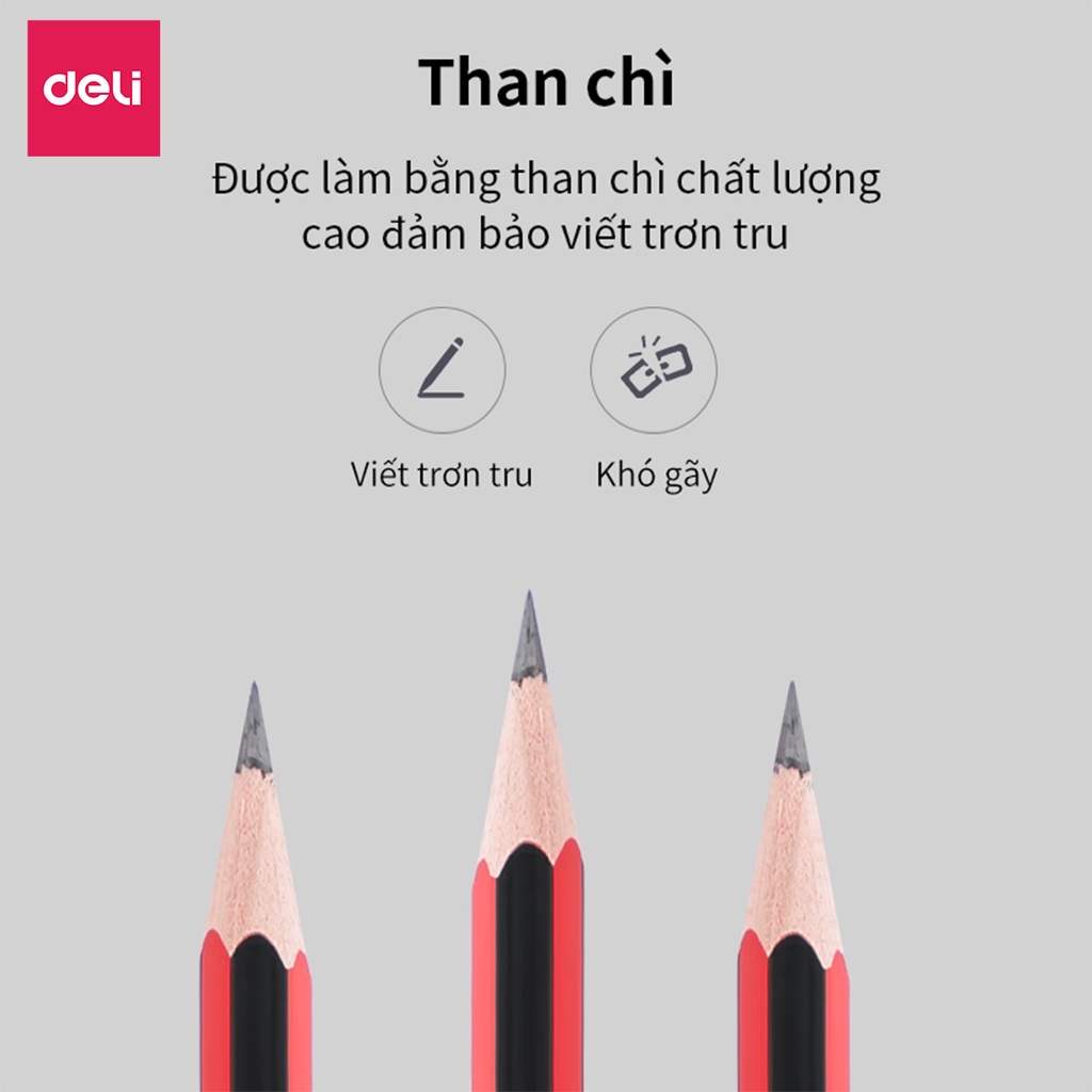 Vỉ 10 bút chì lục giác Deli 2B/HB kèm đầu tẩy - Bút chì viết chất liệu gỗ an toàn dễ gọt phù hợp với học sinh văn phòng