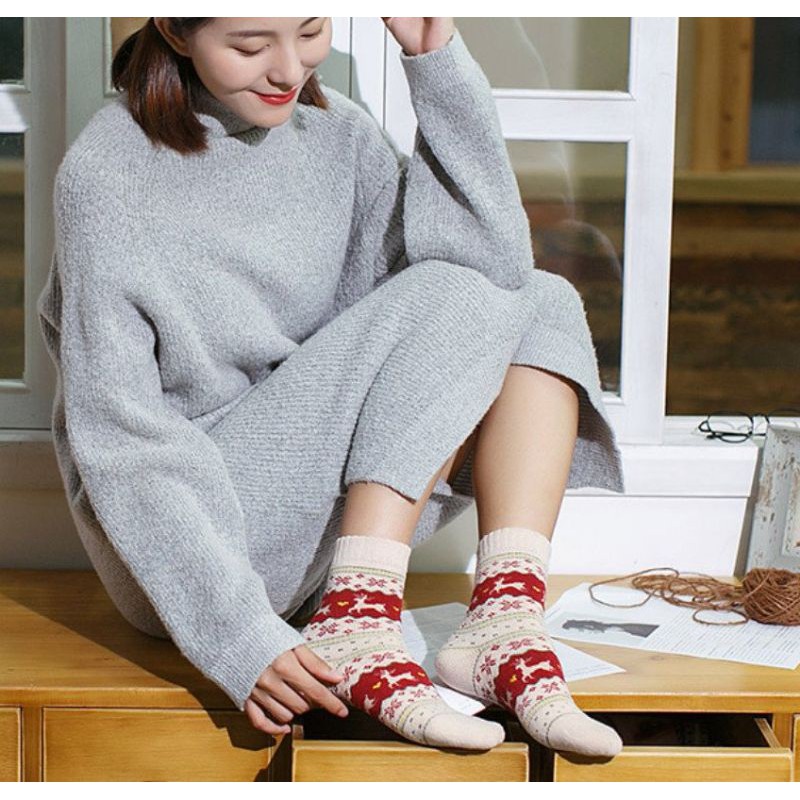 Vớ tất len cổ cao họa tiết thổ cẩm vintage cực ấn tượng - Tất nam nữ chủ đề Giáng sinh đẹp độc rẻ