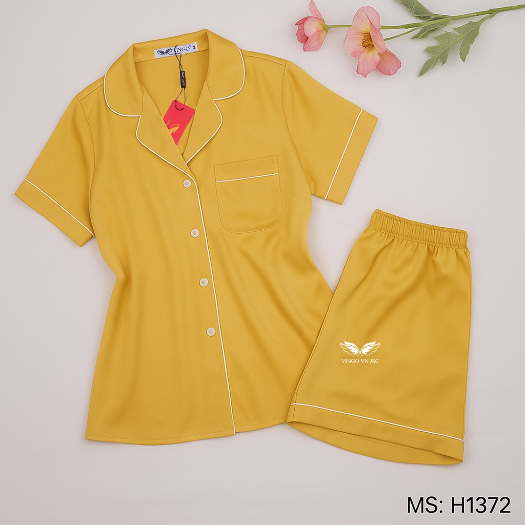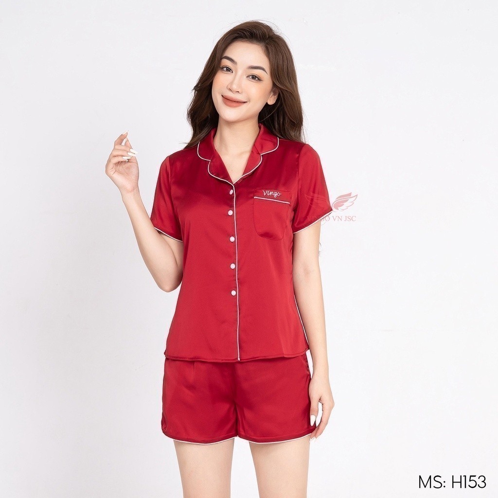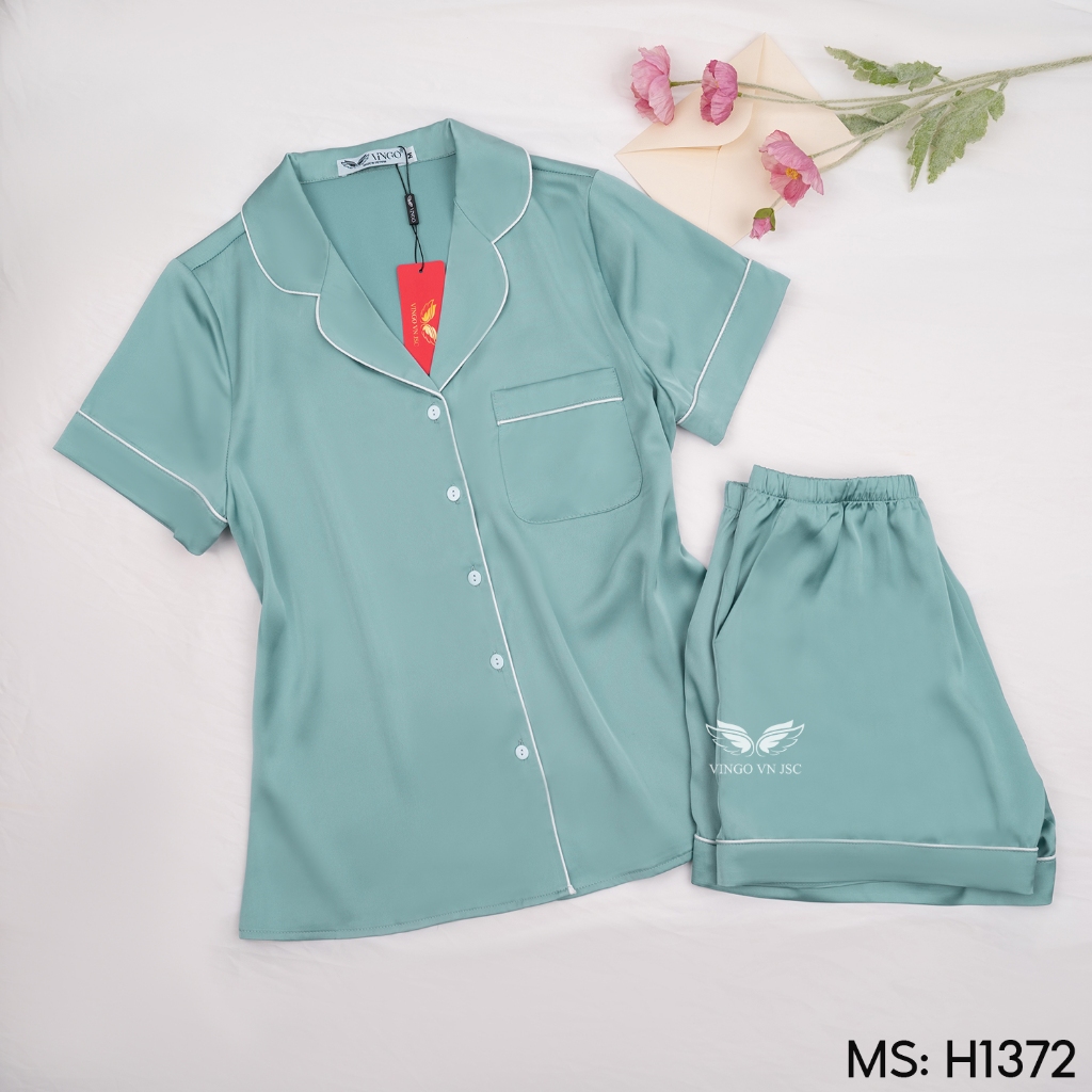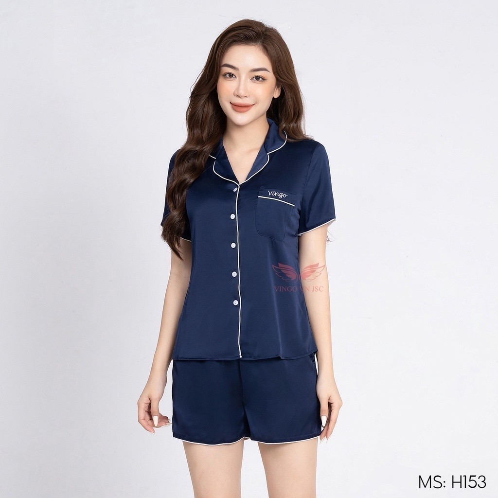 Pijama mặc nhà đồ ngủ nữ lụa Pháp VINGO/VINGORIA tay ngắn xuân hè H153