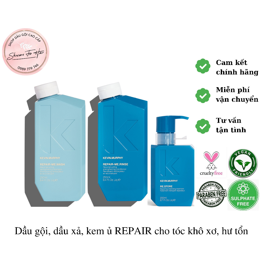 Dầu gội xả và kem ủ Kevin Murphy Repair dung tích 250ml dành cho tóc khô xơ, hư tổn, hóa chất