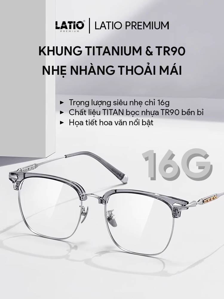 Kính mắt Nam Nữ LATIO PREMIUM, Gọng kính cao cấp TITAN bọc nhựa TR90 siêu bền bỉ và nhẹ nhàng - P50