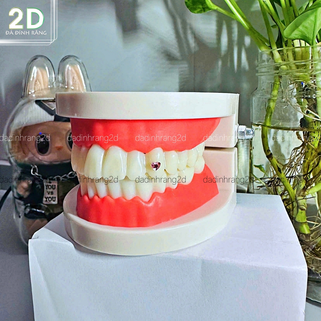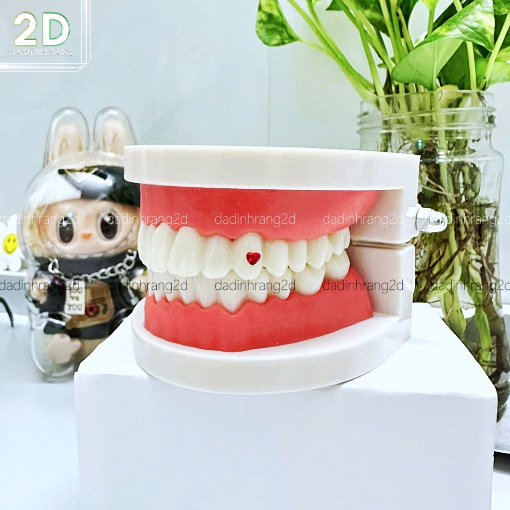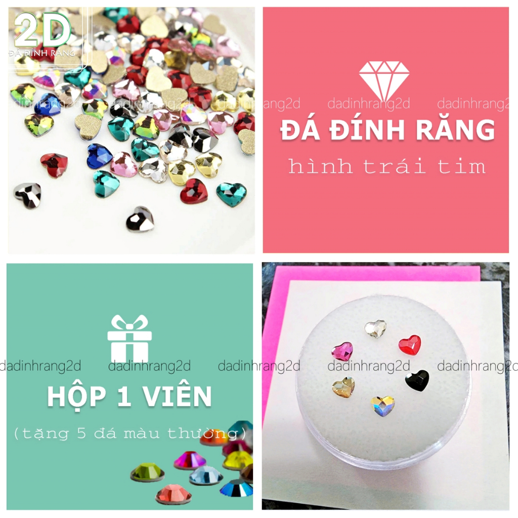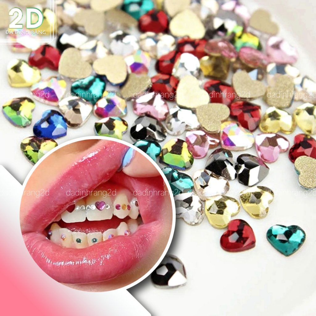 Đá gắn răng trái tim đủ màu, Đá đính răng 2D (Tặng 5 viên đá tròn)