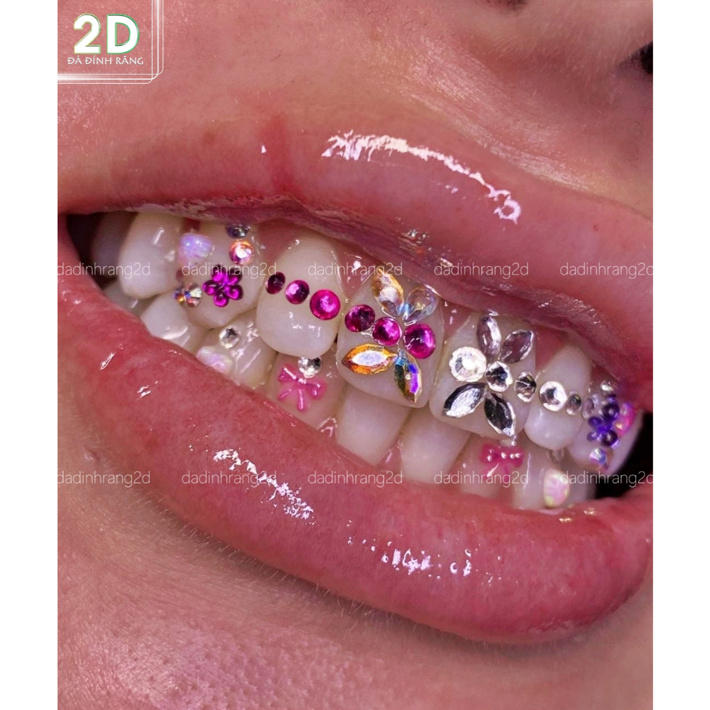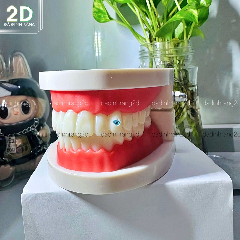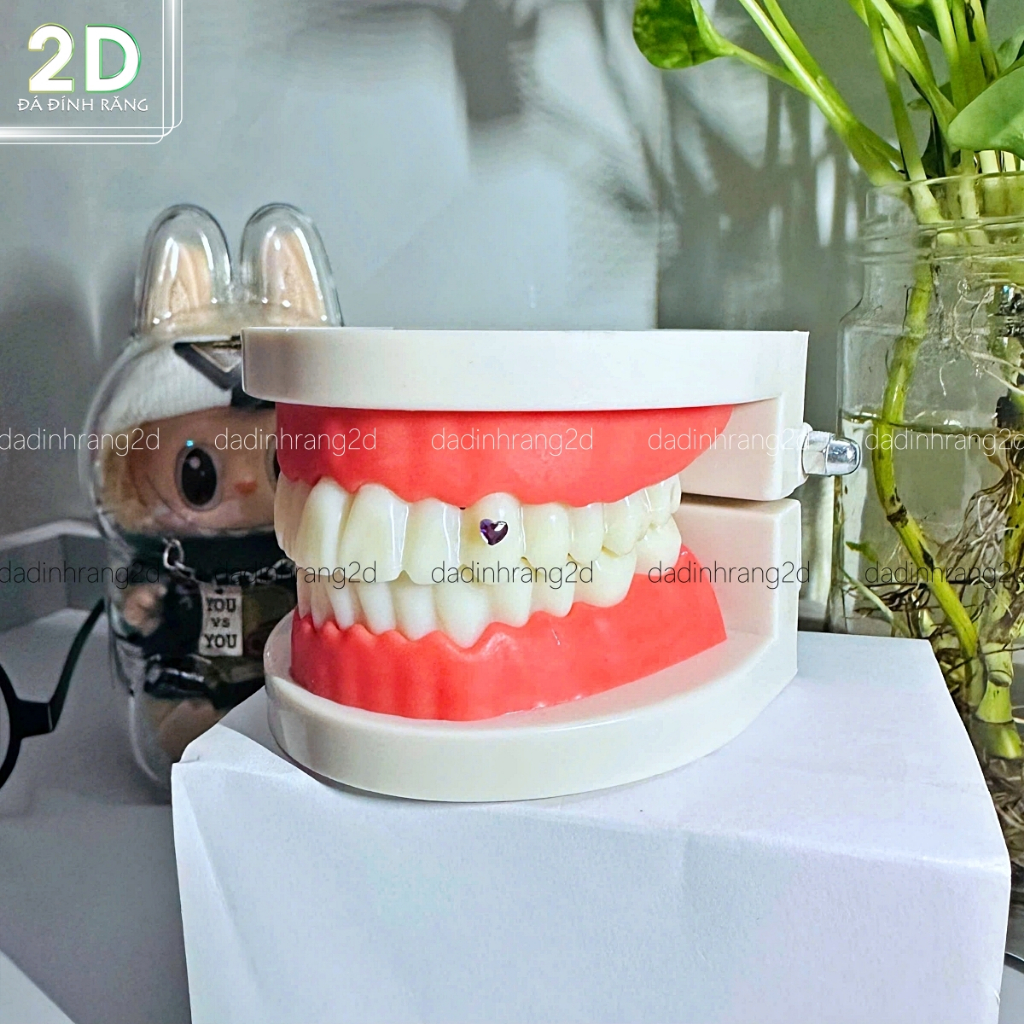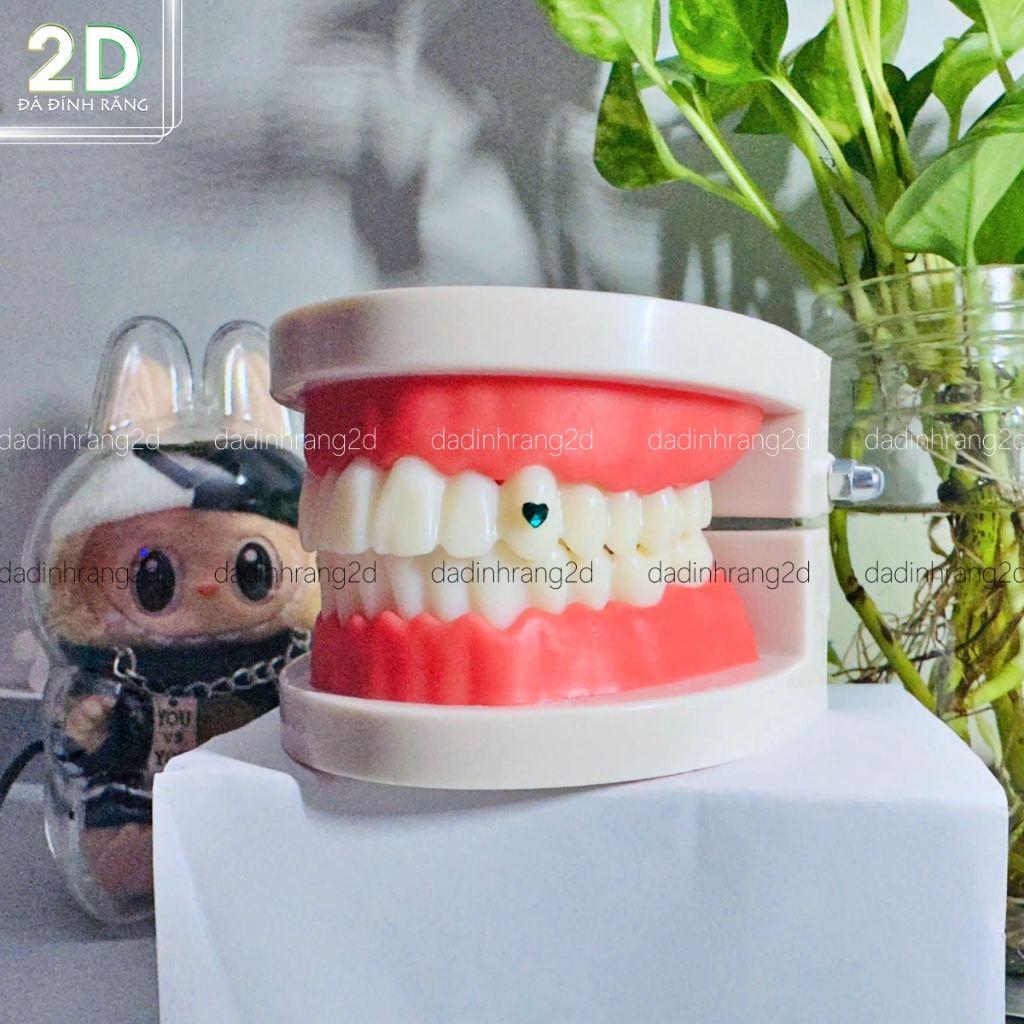 Đá gắn răng trái tim đủ màu, Đá đính răng 2D (Tặng 5 viên đá tròn)