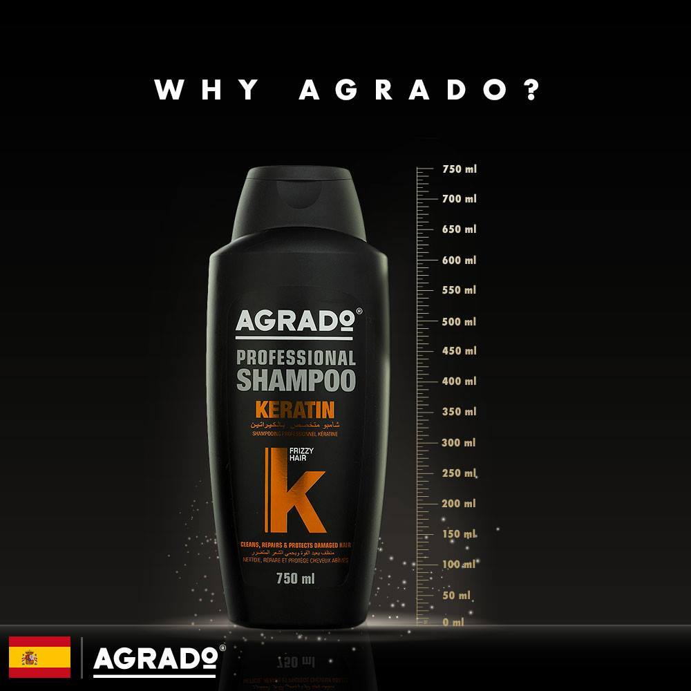 Dầu gội Agrado Keratin giúp làm sạch gàu, phục hồi tóc hư tổn, bóng mượt chắc khỏe (Chai 750ml)