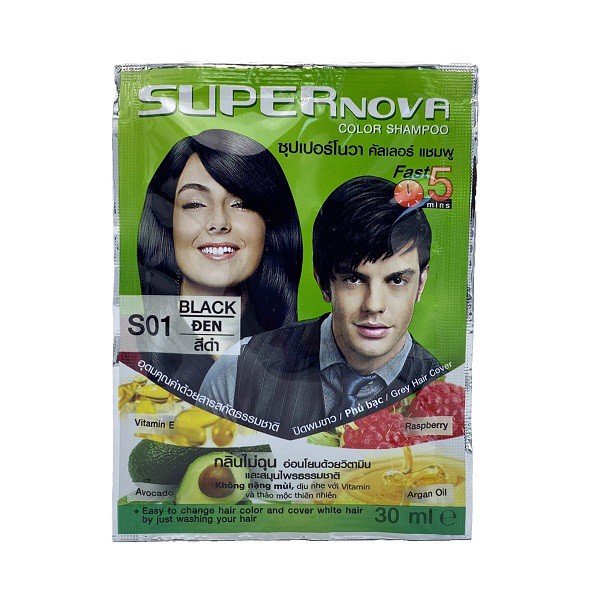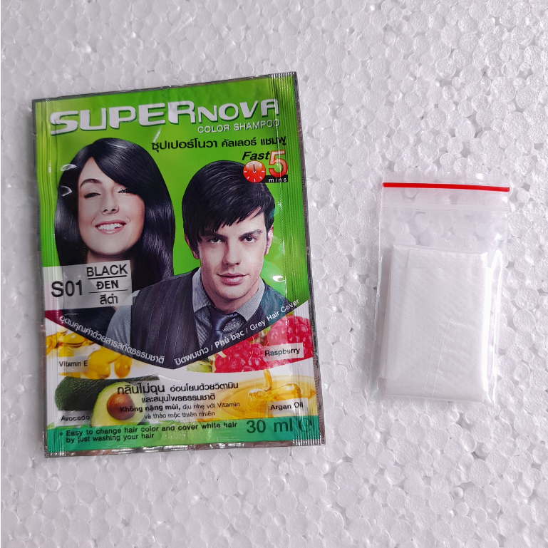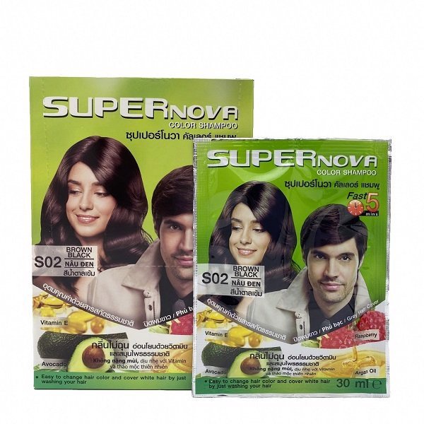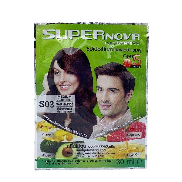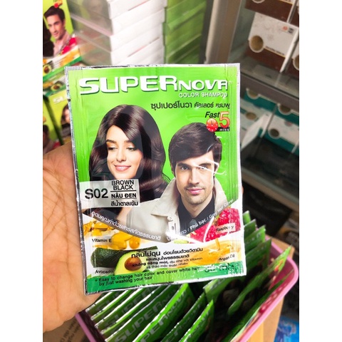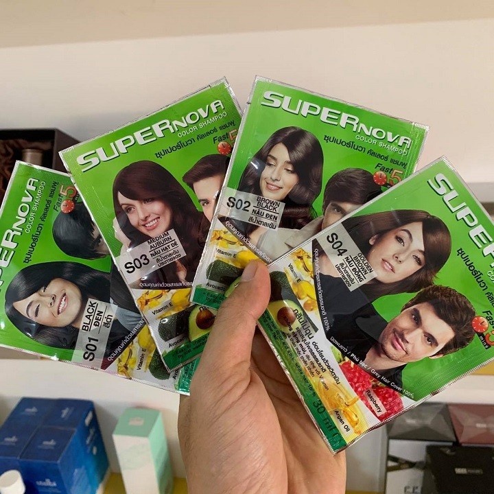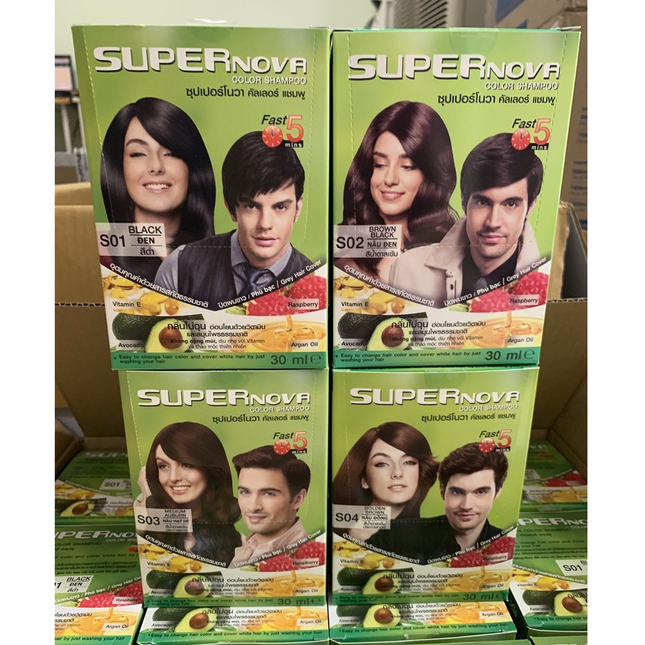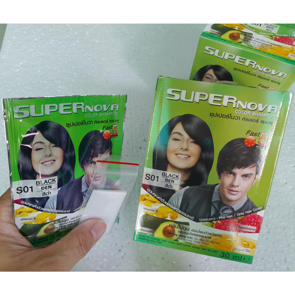 [04gói] Gội Nhuộm tóc phủ bạc 15 phút thảo dược Super Nova gội là nâu đen, Nâu Đồng, Nâu Hạt Dẻ