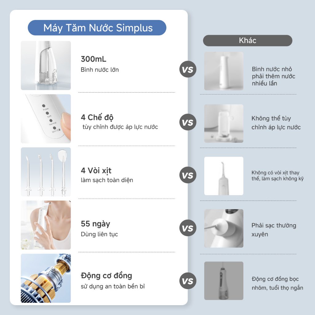 Simplus Máy Tăm Nước Bình Nước Lớn 300mL 4 Chế Độ 4 Vòi Xịt Dùng Liên Tục 5 Ngày Tần Số Xung 1600 Lần/phút CYQH003