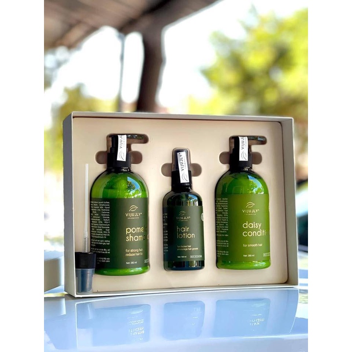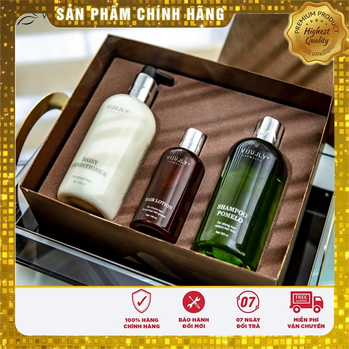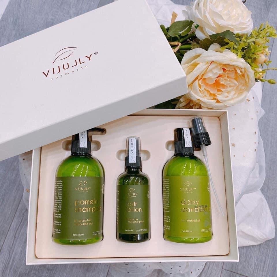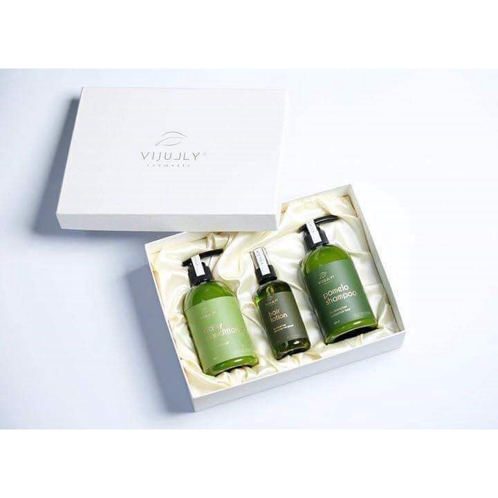 [100% Chính Hãng] Bộ combo 3 in 1 Vijully dầu gội, dầu xả, tinh dầu xịt bưởi Vijully (Gồm hộp và túi xách)