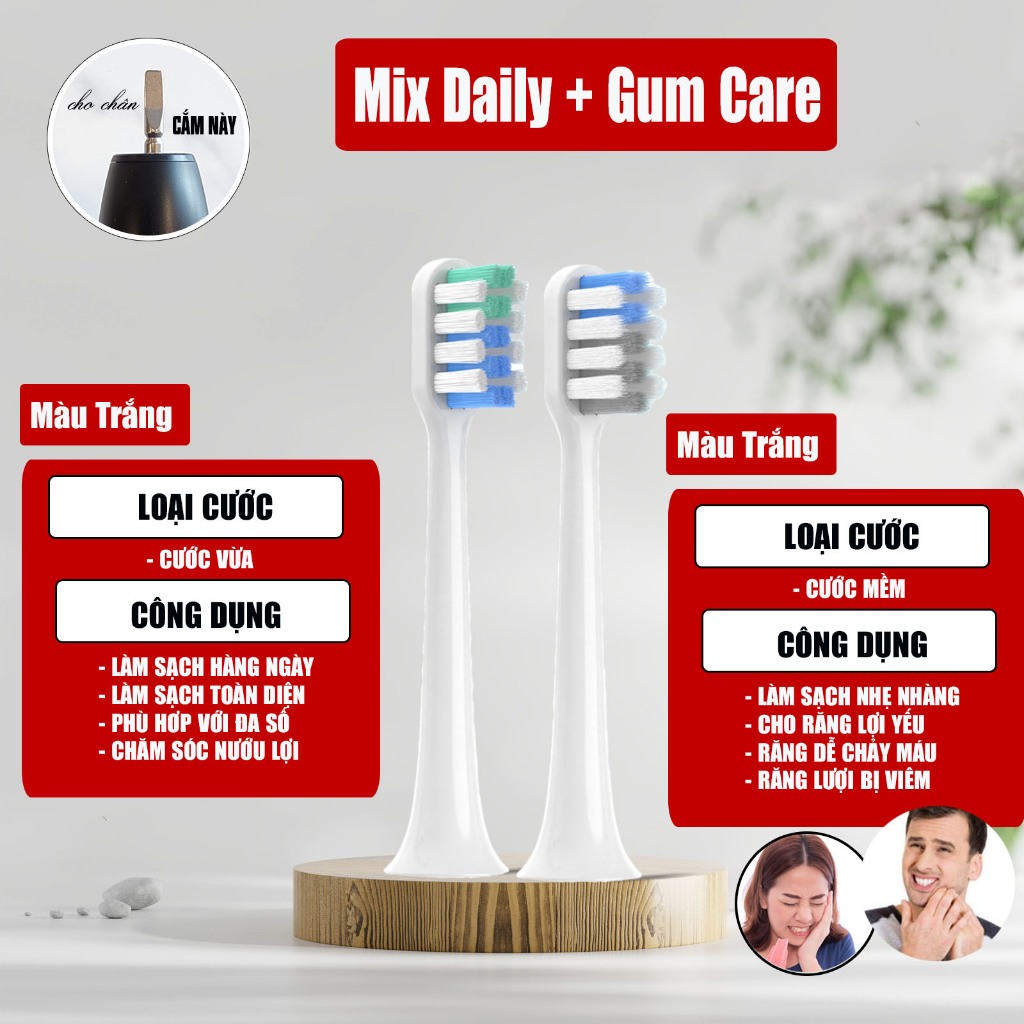 Cho máy HangY HY23 Pro, H1 Pro, Set 2 đầu bàn chải đánh răng điện, Giá treo, Hộp Minh House Bei