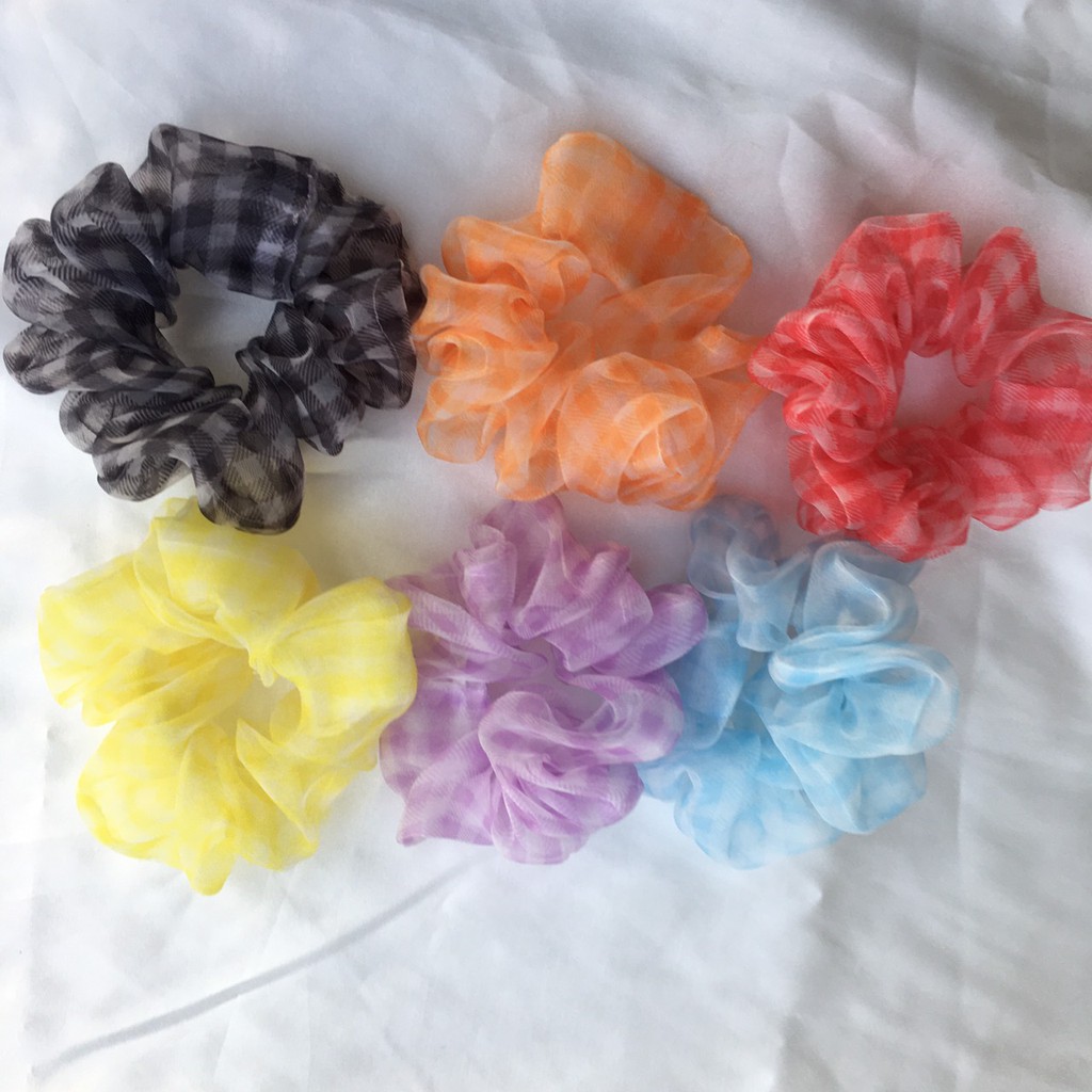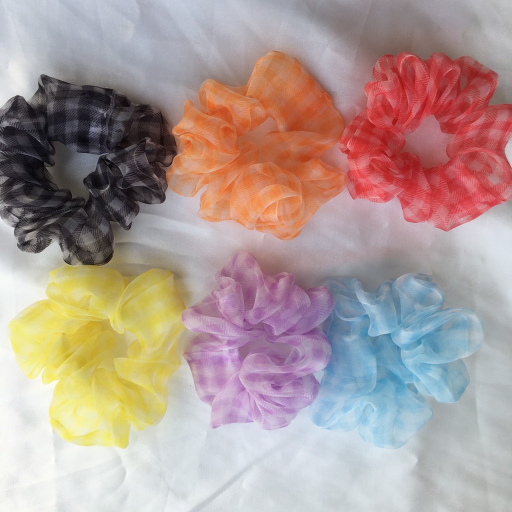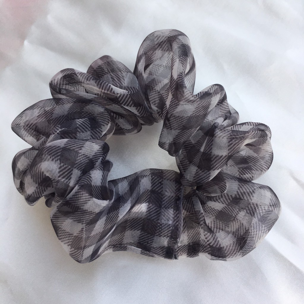 3 Scrunchies chun cột tóc hoạ tiết kẻ caro giao ngẫu nhiên