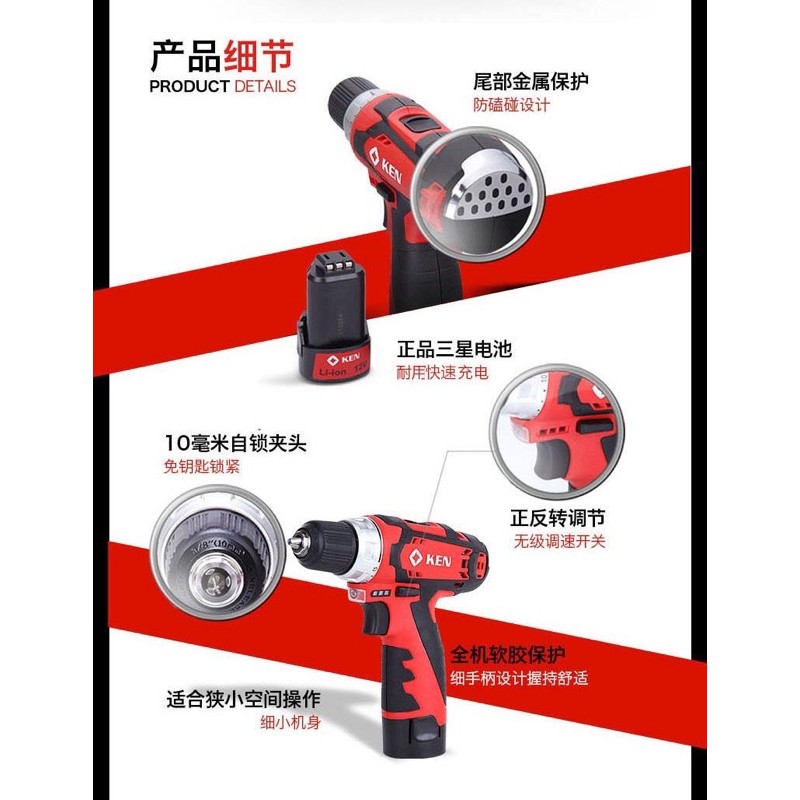 KHOAN PIN KEN 12V BL6012C PIN 2AH CHÍNH HÃNG .ĐẦU KẸP 10MM ,15 CẤP TRƯỢT ,MÔ TƠ CHỔI THAN .