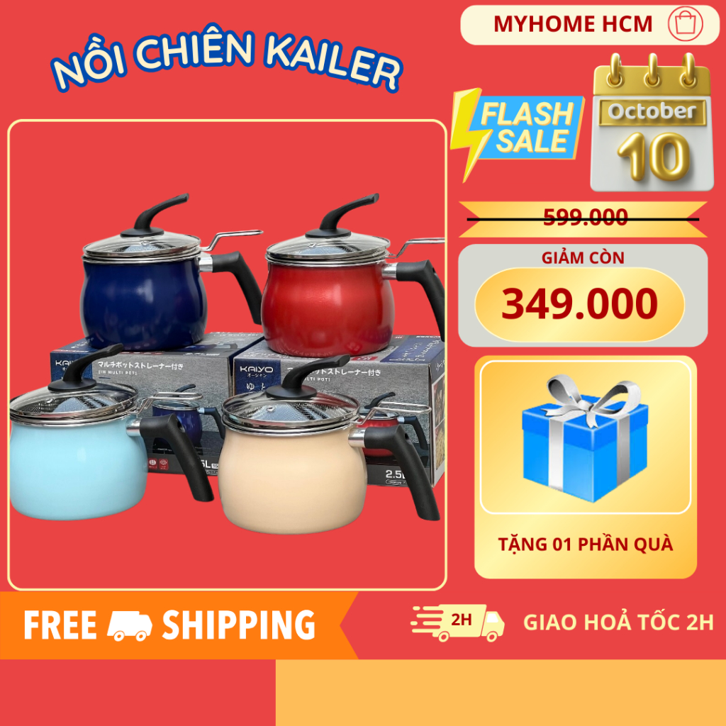 Nồi chiên ngập dầu Kailer kèm rổ chiên inox vung tự đứng, đường kính 15cm dùng được cho mọi loại bếp