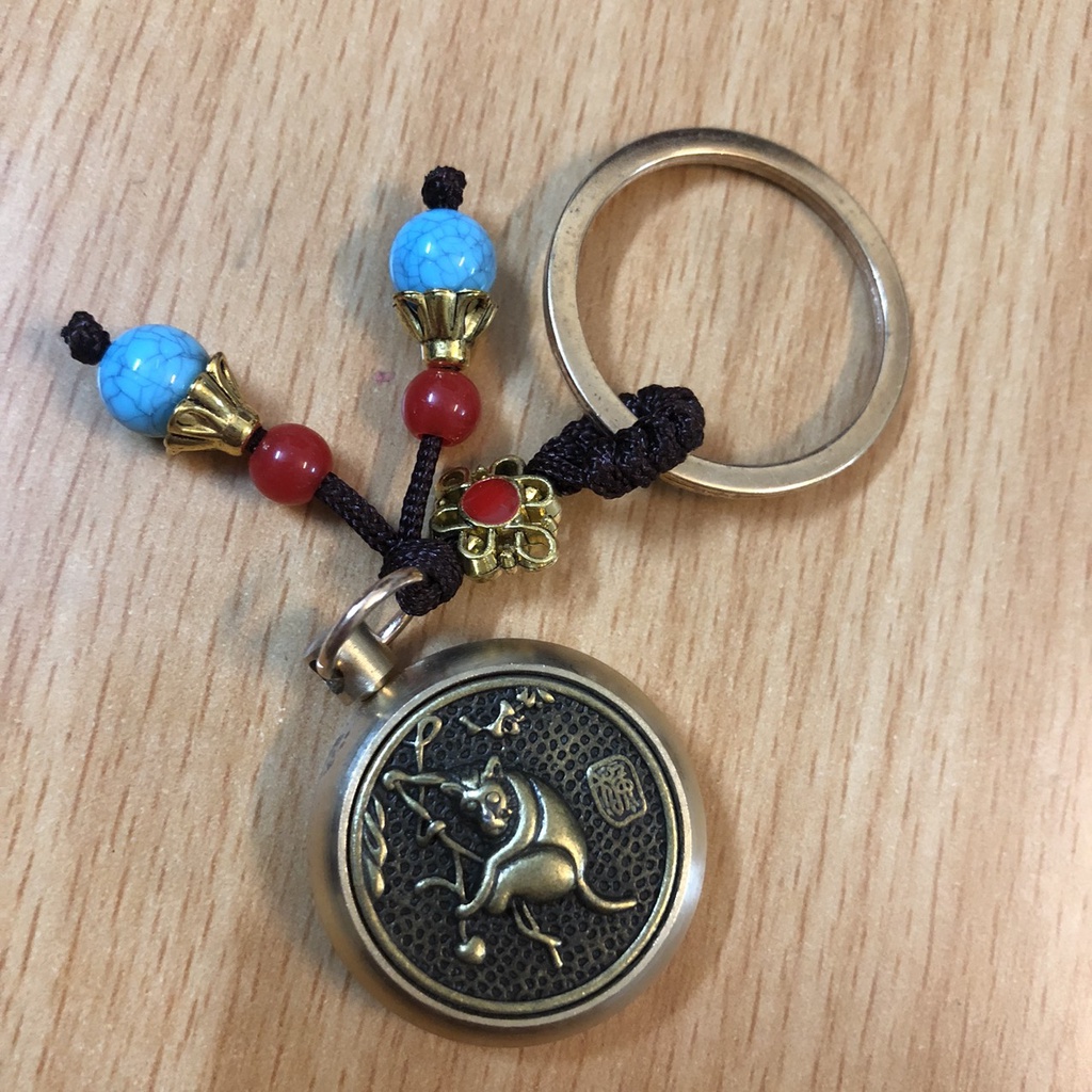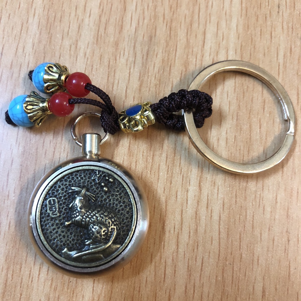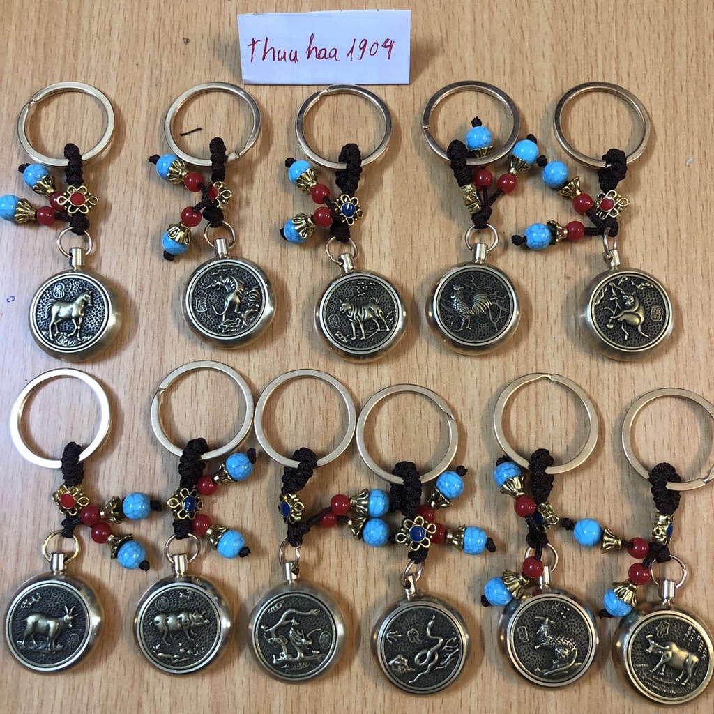 Móc Khoá phong thủy ô tô xe máy 12 Con giáp bằng Đồng thật mặt xoay 360 độ thu hút tài lộc, thuuhaa1904 (kèm hạt xanh)