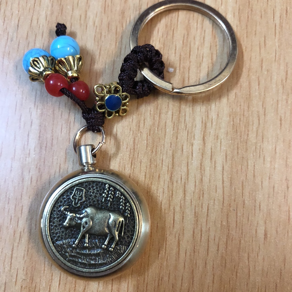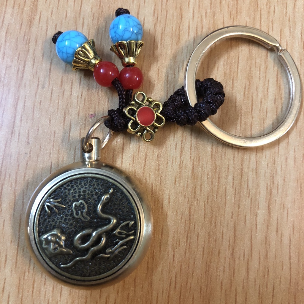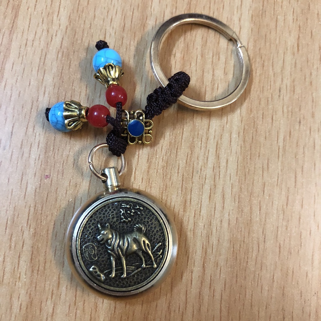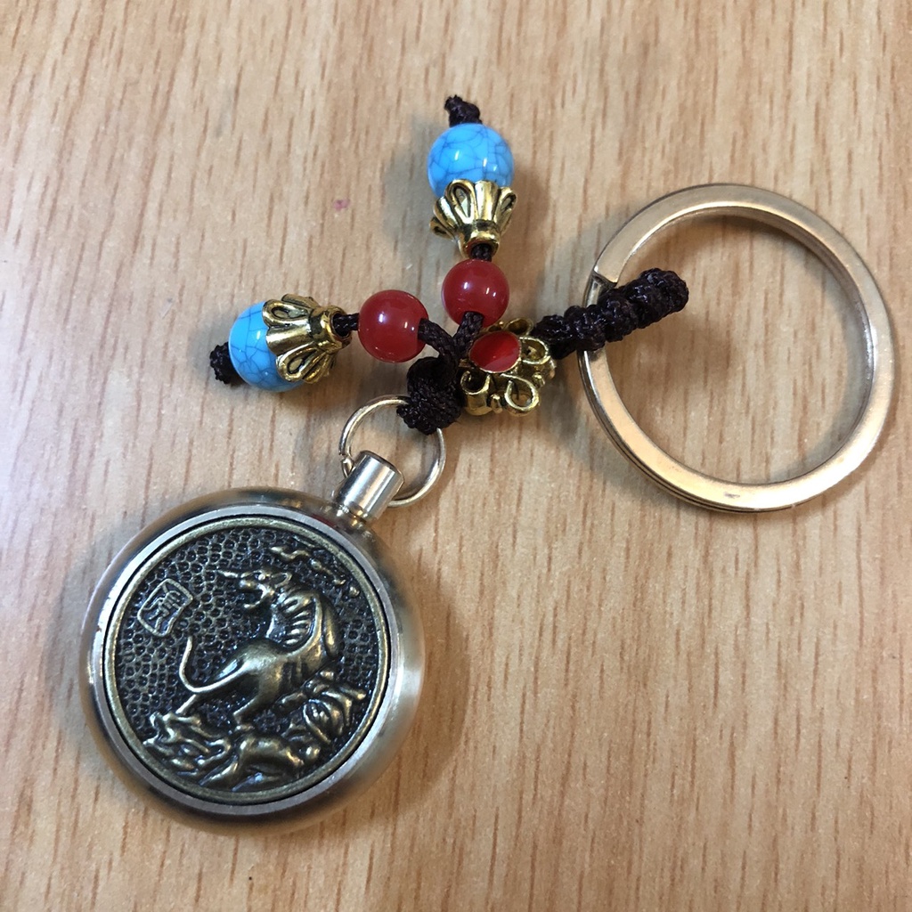 Móc Khoá phong thủy ô tô xe máy 12 Con giáp bằng Đồng thật mặt xoay 360 độ thu hút tài lộc, thuuhaa1904 (kèm hạt xanh)