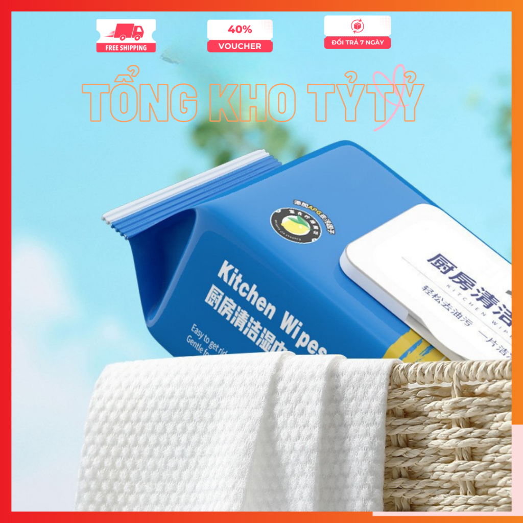 Khăn Ướt Lau Bếp Đa Năng 80 Tờ Dày Dặn Tẩy Dầu Mỡ Cực Mạnh – Kháng Khuẩn An Toàn Cho Tay – Kitchen Wipes - Tổng Kho TYTY