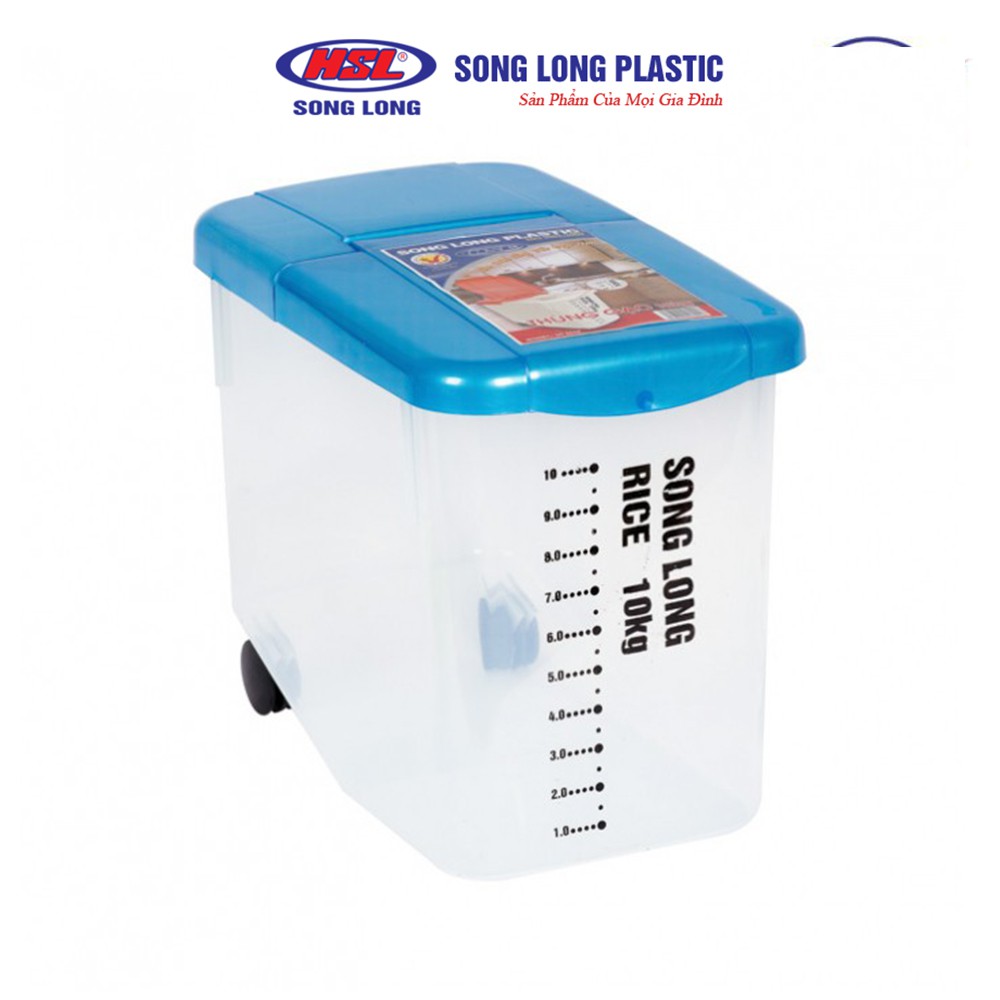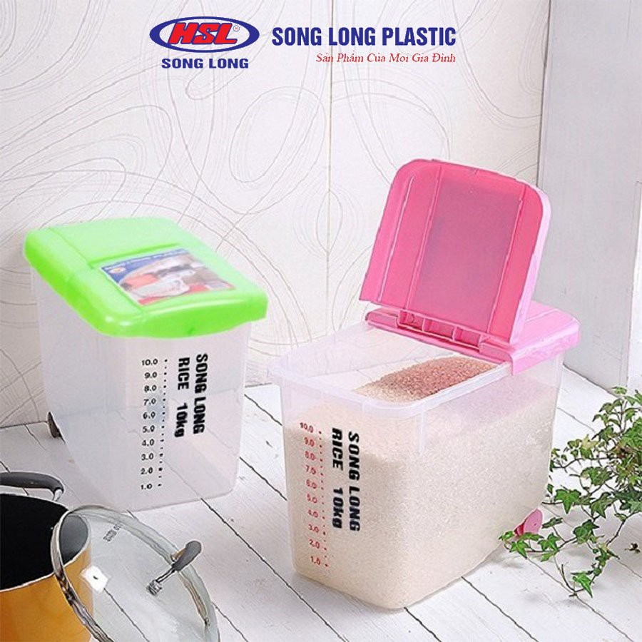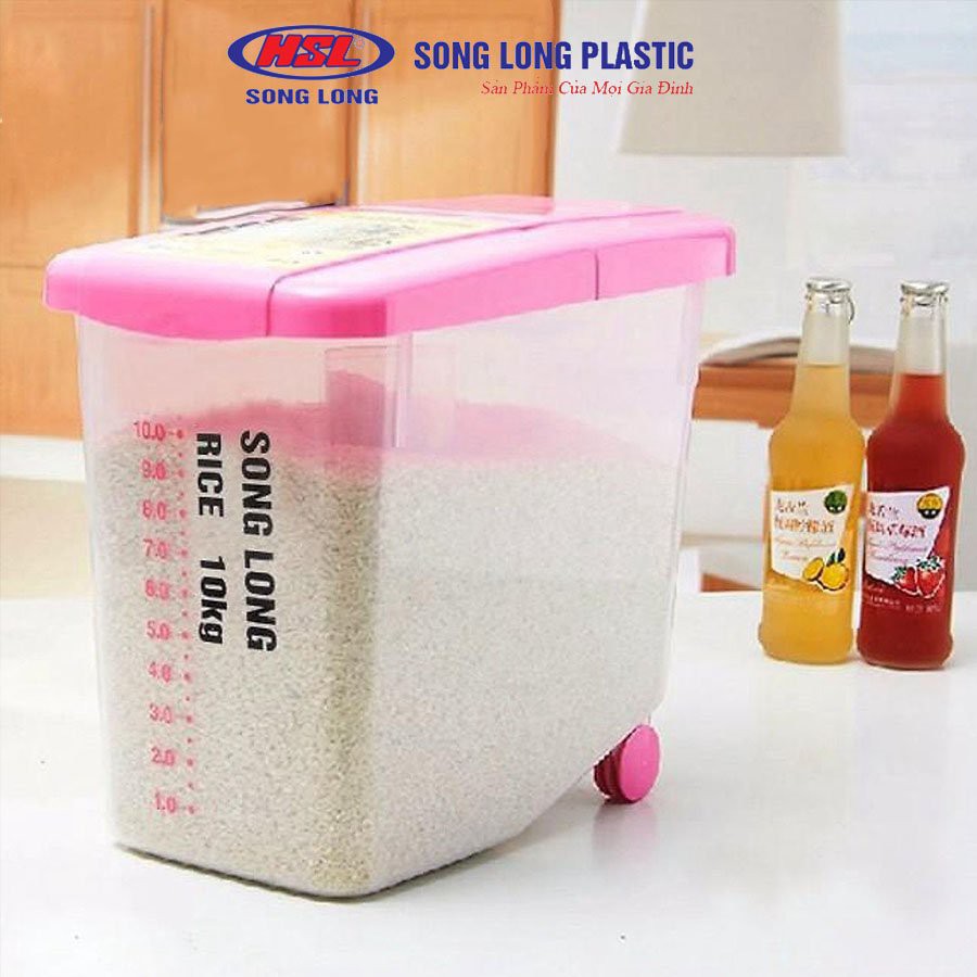 Thùng đựng gạo có nắp Song Long Plastic 10kg, 15kg nhựa cao cấp có bánh xe (màu ngẫu nhiên)
