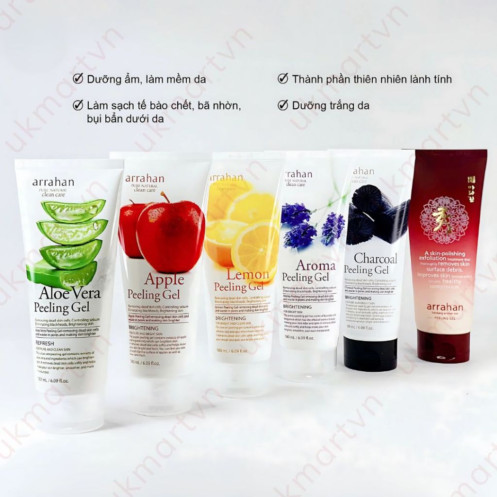 Gel Tẩy Tế Bào Chết Arrahan 180ml Peeling Gel Hương Táo, Than Hoạt Tính, Hương Bưởi, Aroma
