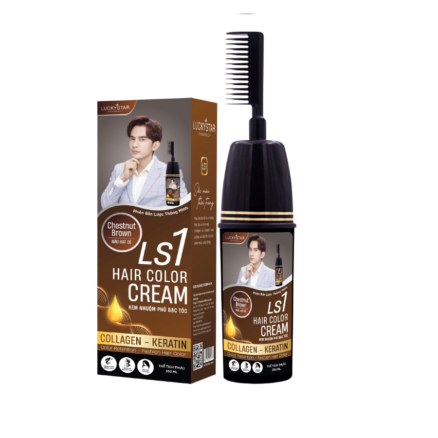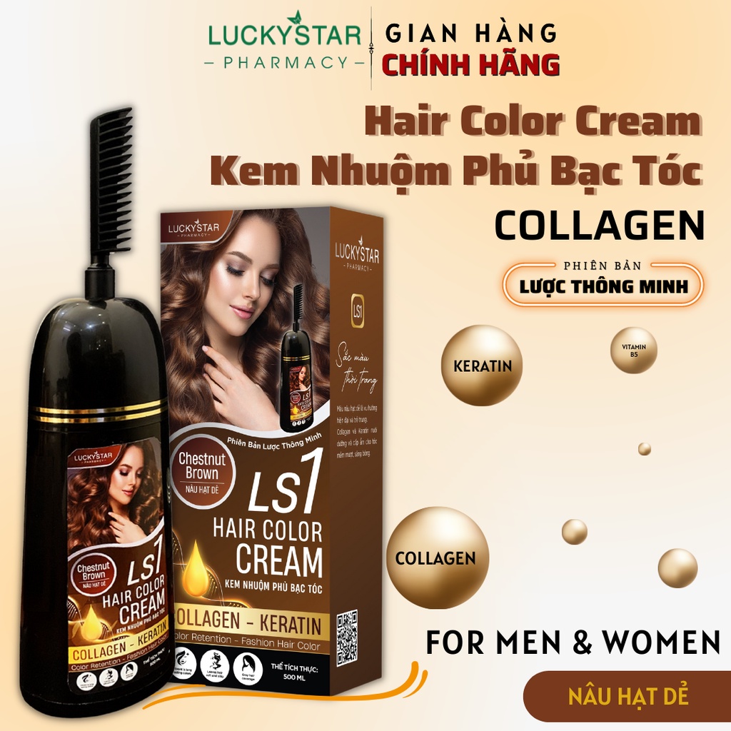 Kem Nhuộm Nâu Hạt Dẻ Chai Lược Lucky Star [ Chính hãng ] for Men & Women. Màu nhuộm tóc Nâu Tây
