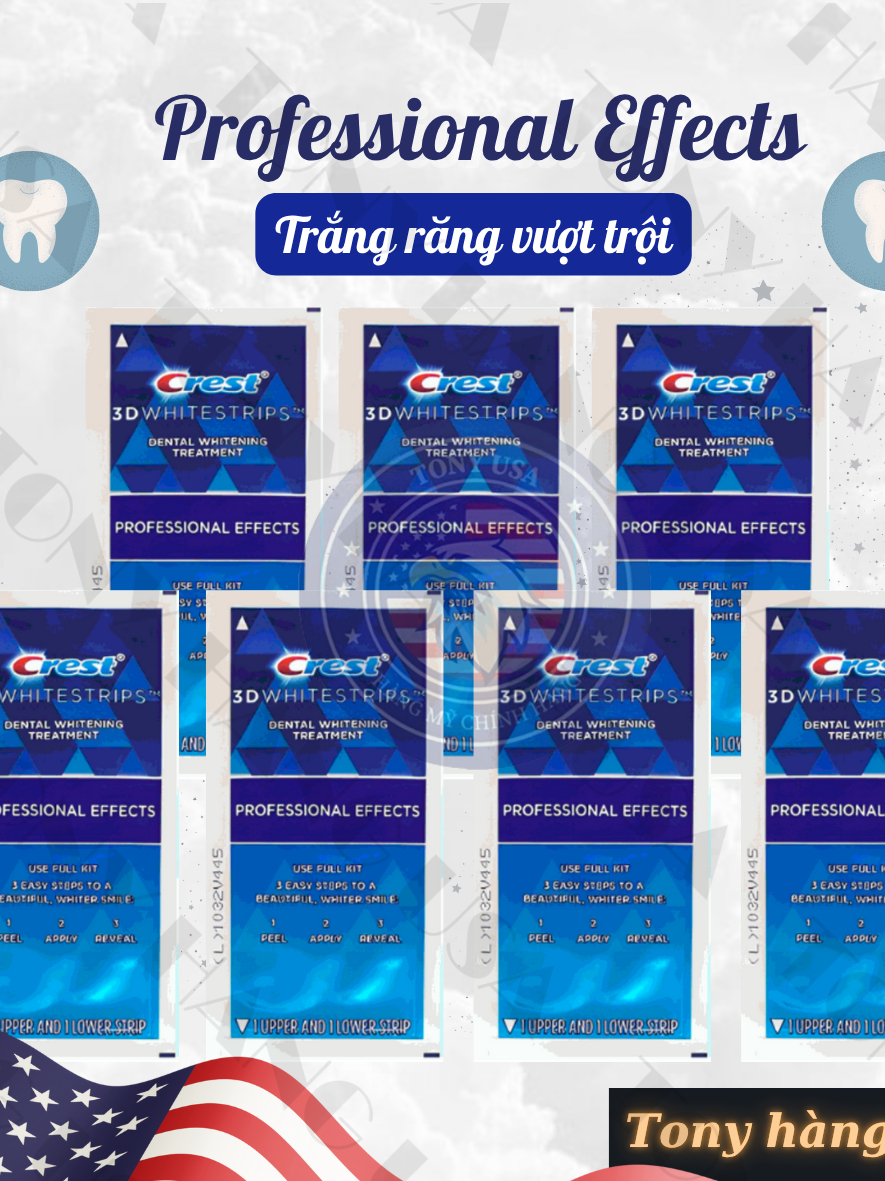 Dán Trắng Răng Crest 3D White Professional Effects Advanced & Express Whitening (30 gói - 60 miếng)