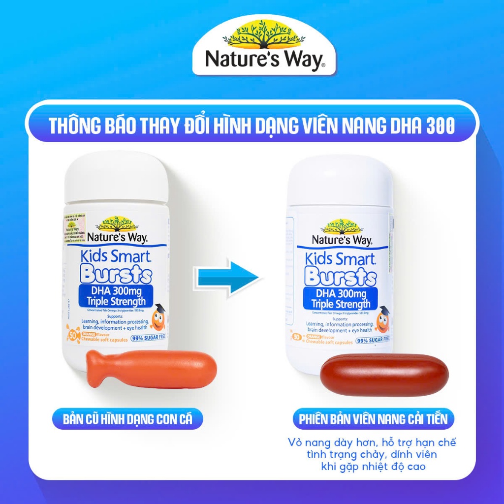 DHA Tú Tài Nature's Way - DHA 300mg Bổ Sung Dầu Cá Cô Đặc Omega 3 RTG Hàm Lượng Cao Cho Bé - Hộp 50 Viên