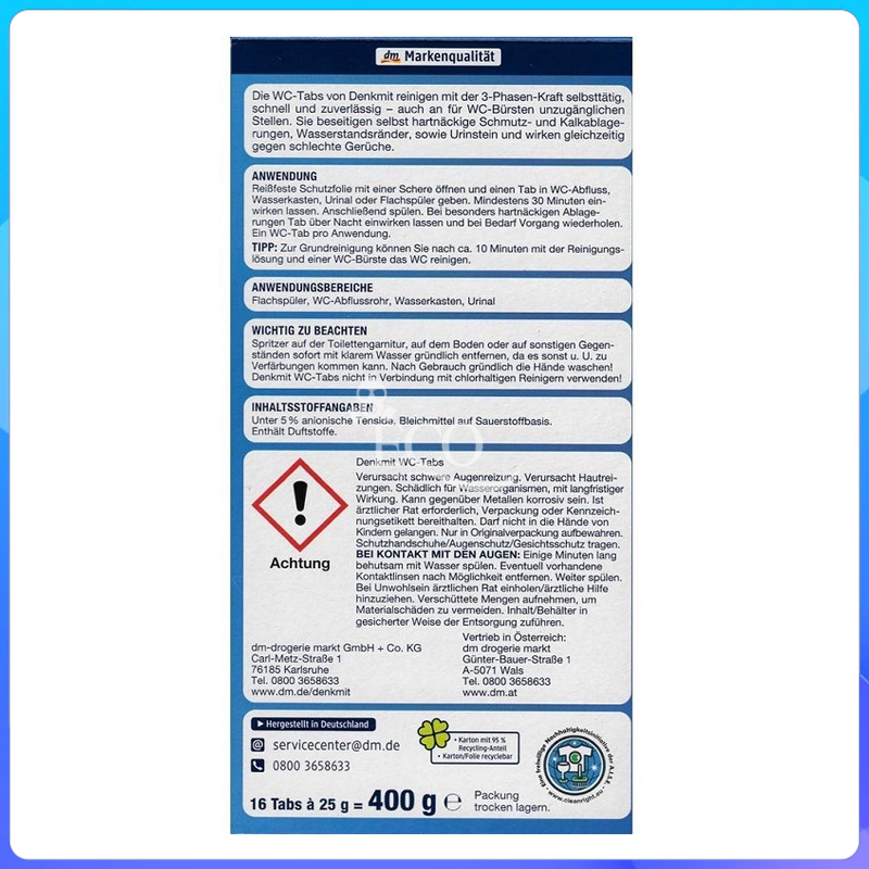 Viên Tẩy Bồn Cầu Denkmit WC - Hộp 16 viên của Đức