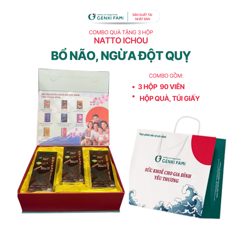 TPBVSK Viên Uống Bổ Não, Ngừa Đột Quỵ Tai Biến, Nattokinase 3000FU Natto Ichou Genki Fami Nhật Bản Hộp 90 Viên