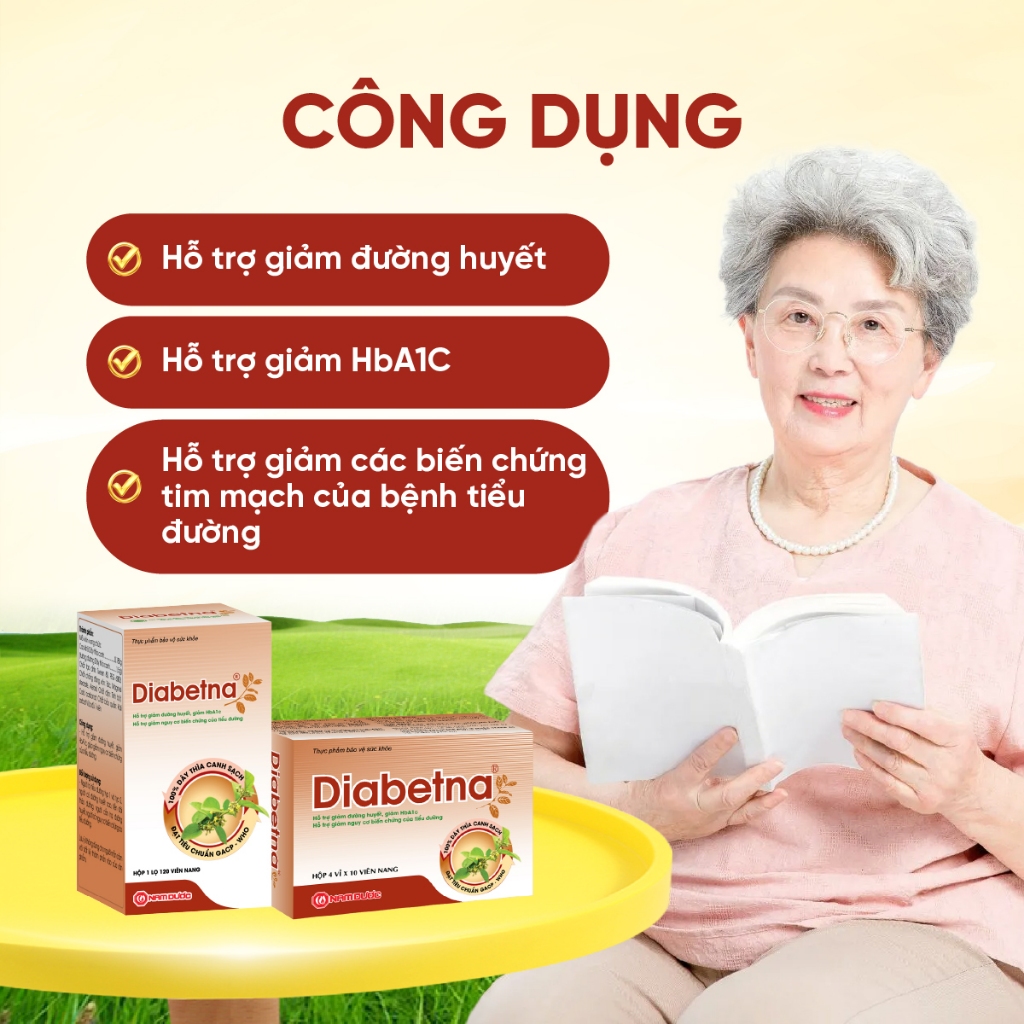 Viên uống dây thìa canh Diabetna dành cho người tiểu đường - giúp làm giảm đường huyết - Hộp 40v