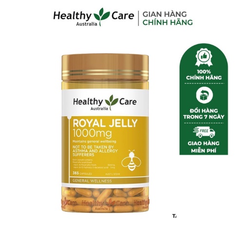 Viên uống sữa ong chúa Healthy Care Royal Jelly hỗ trợ làm đẹp da làm chậm lão hóa 365 viên