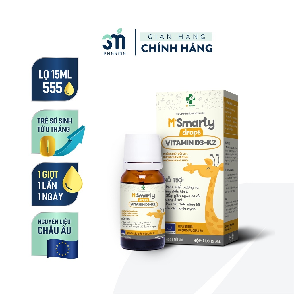 D3 K2 Mk7 Msmarty 10 ml Dạng Pipet Và 15 ml Dạng Nhỏ Giọt - Vitamin Tăng Chiều Cao Cho Trẻ Sơ Sinh