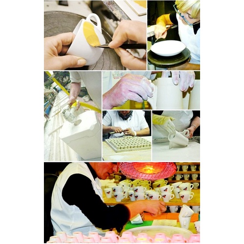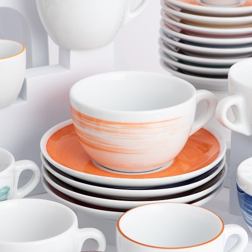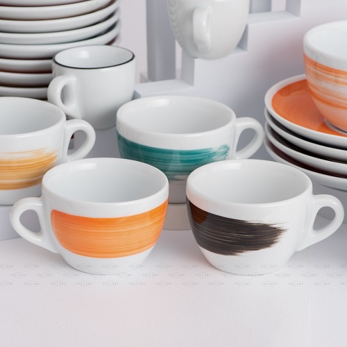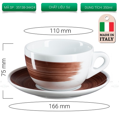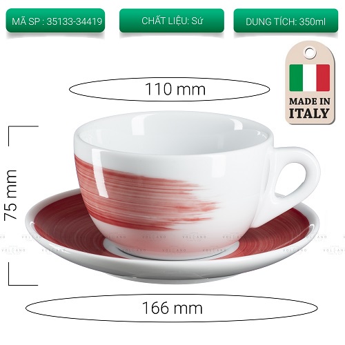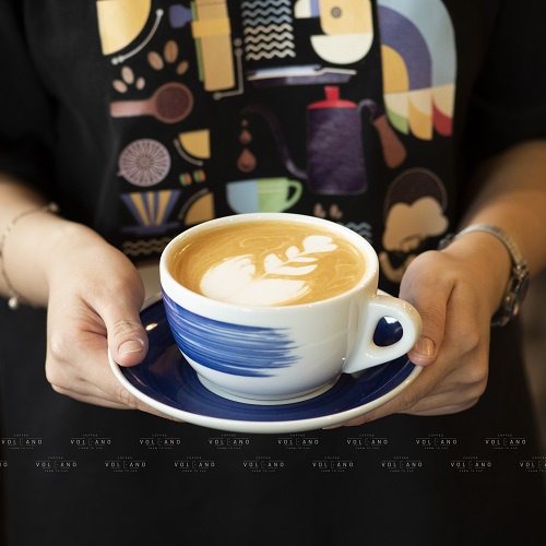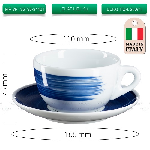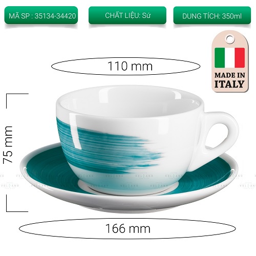 Volcano Bộ đĩa và ly sứ cà phê Ancap Latte 350ml vẽ tay lên thân