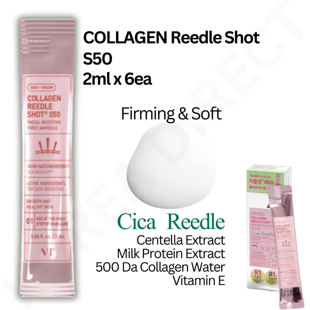 Vt Cosmetics Reedle Shot 50, 100, 300, 500, Collagen, Glutathione, Argireline Peptide, EFG, DAISO