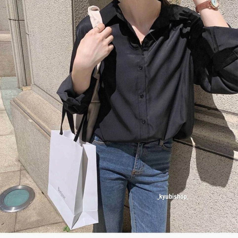 W Áo Sơ Mi Trắng Đen Trơn Form Rộng Nam Nữ Unisex - Áo SOMI Ulzzang đi học sinh W01