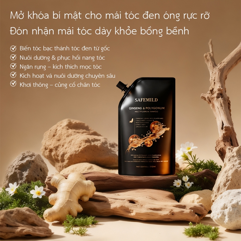 Sản phẩm chính hãng chất lượng cao, Dầu gội nhân sâm SAFEMILD, hỗ trợ giảm rụng tóc và giúp tóc dày, chắc khỏe hơn