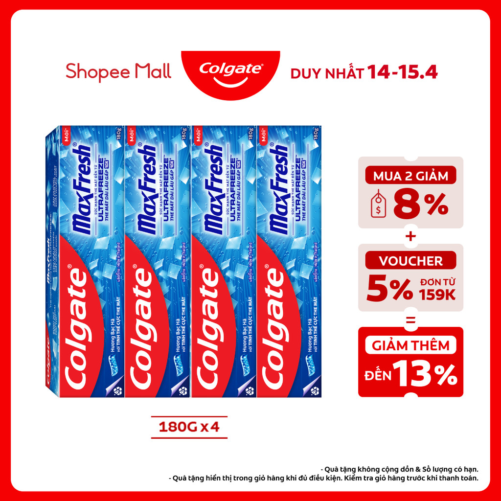 Bộ 4 Kem đánh răng Colgate Maxfresh ULTRA FREEZE the mát gấp 10X 180g/tuýp