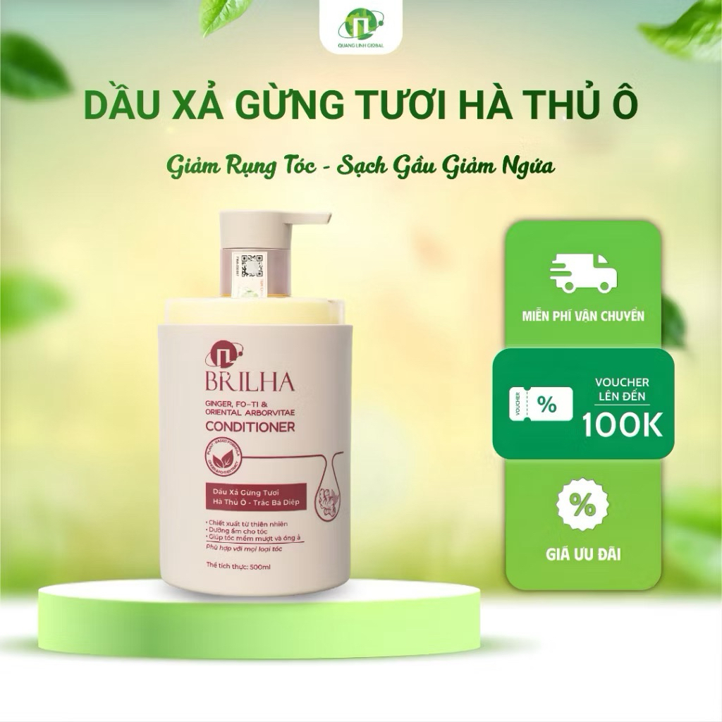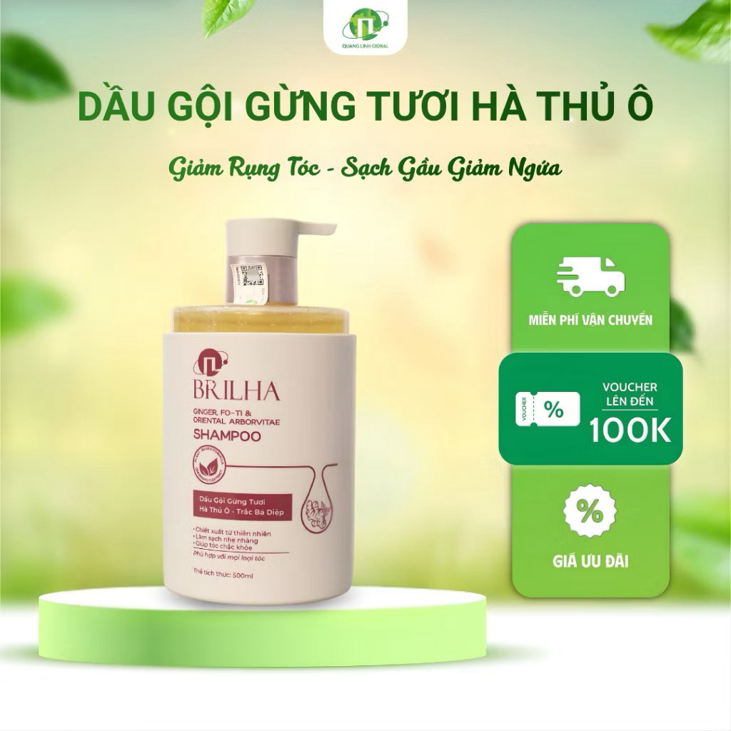 Combo Dâu Gội - Xả Gừng Tươi, Hà Thủ, Trắc Bá Diệp Ô BRILHA Kích Mọc Tóc, Giảm Gàu Ngứa 500ml